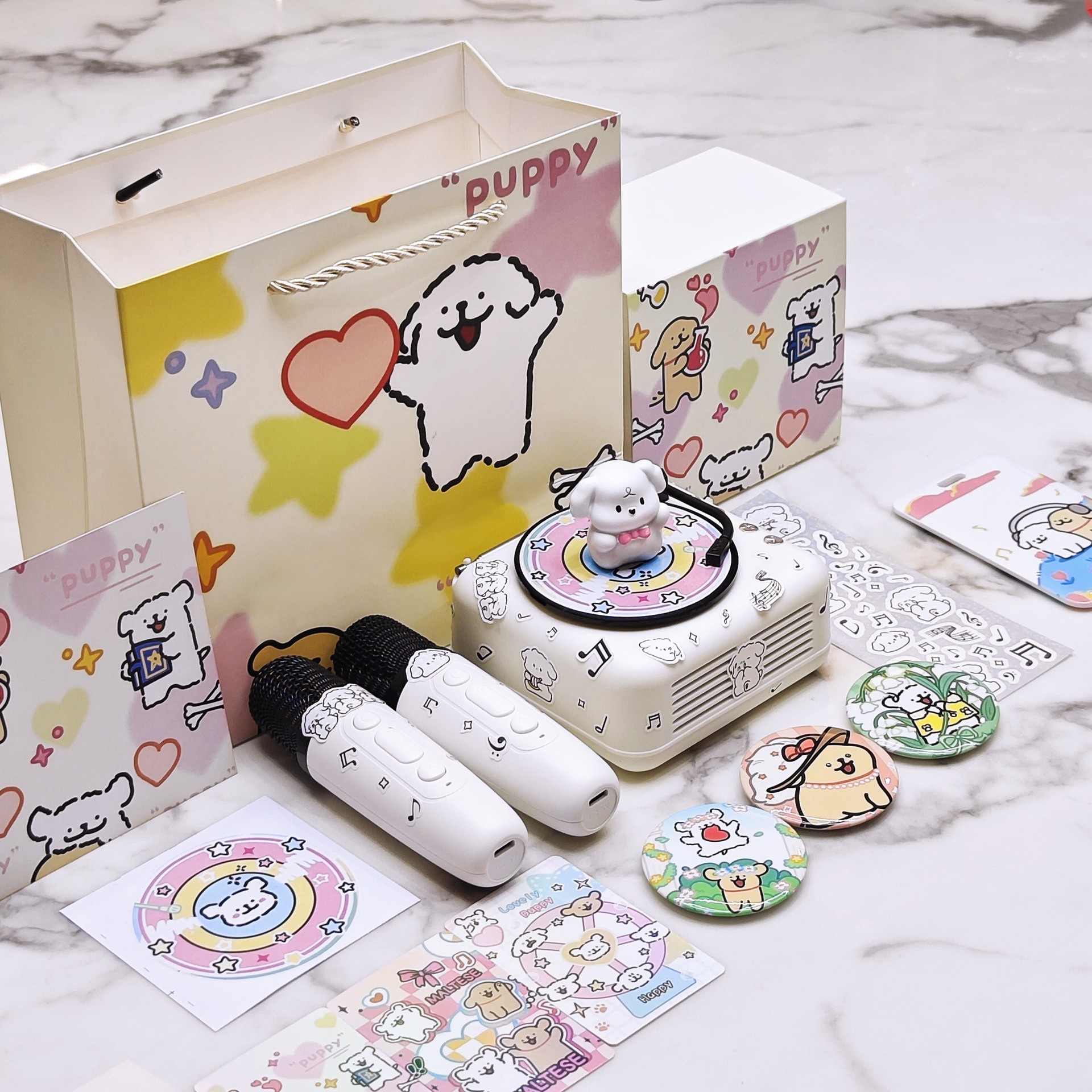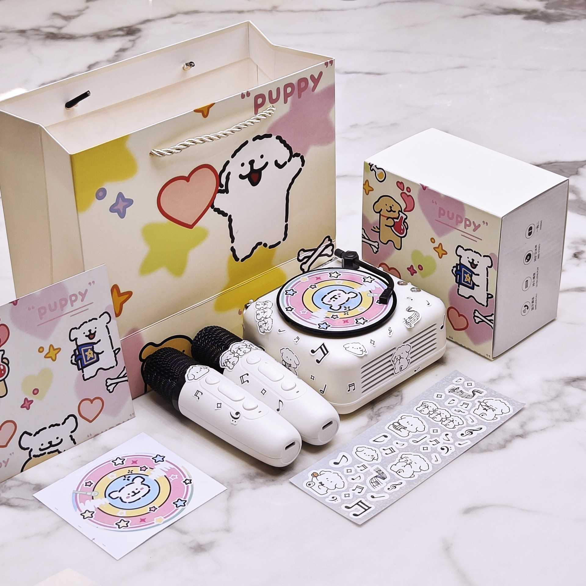 • 밀 2개가 포함된 럭셔리 모델) 귀여운 강아지 스피커 + 스티커*2 + 선물 가방 + 주변기기