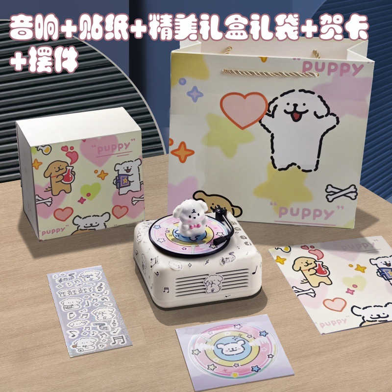 • 고급스러운 장식품 모델) 귀여운 강아지 스피커 + 스티커*2 + 선물 상자 + 선물 가방 + 귀여운 강아지 장식품 + 귀여운 강아지 주변기기