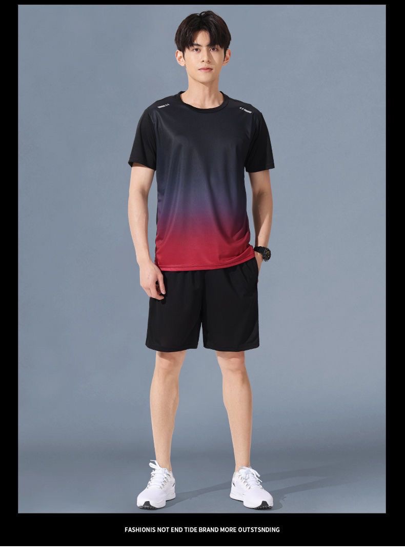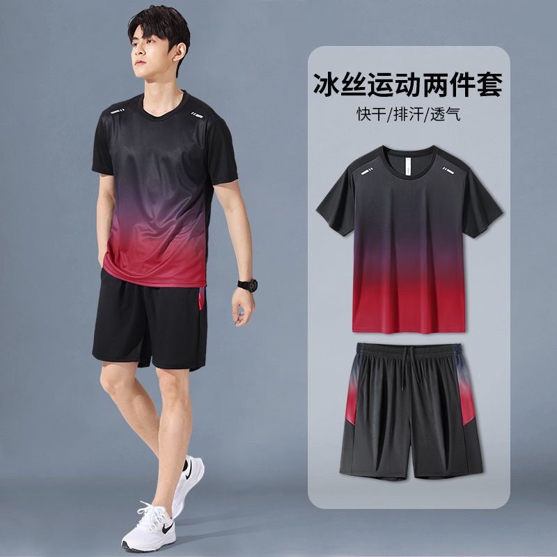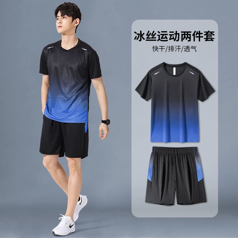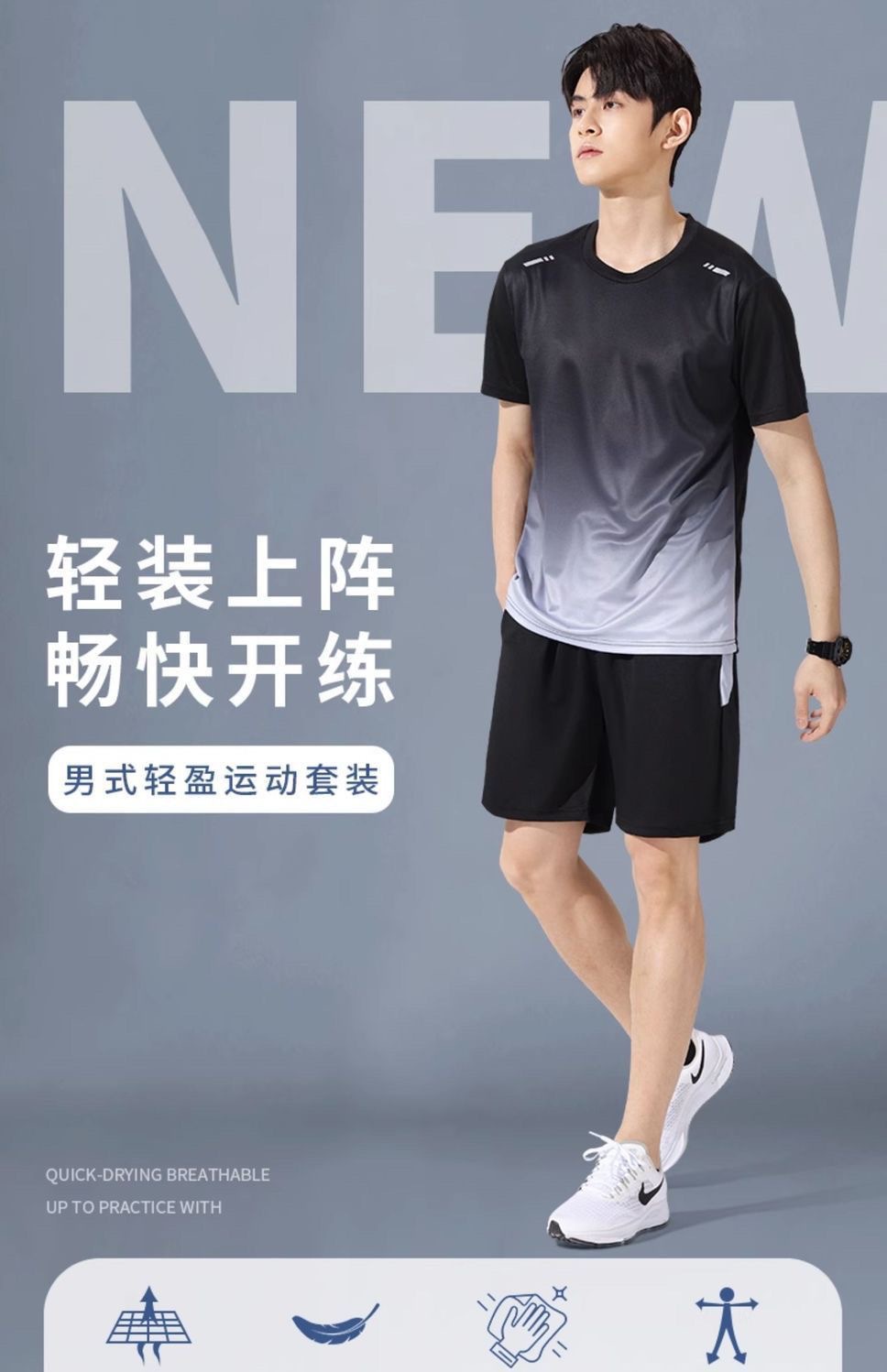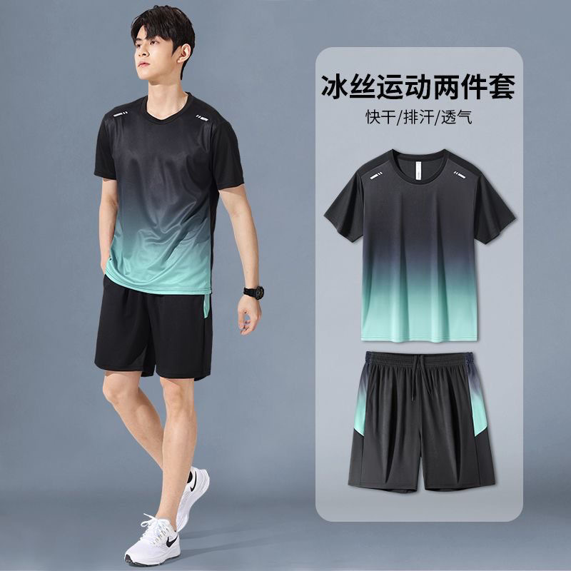 실크 스포츠 정장 남성용 속건성 2025 여름 반팔 아침 달리기 깃털 농구 피트니스 반팔스토어 가기