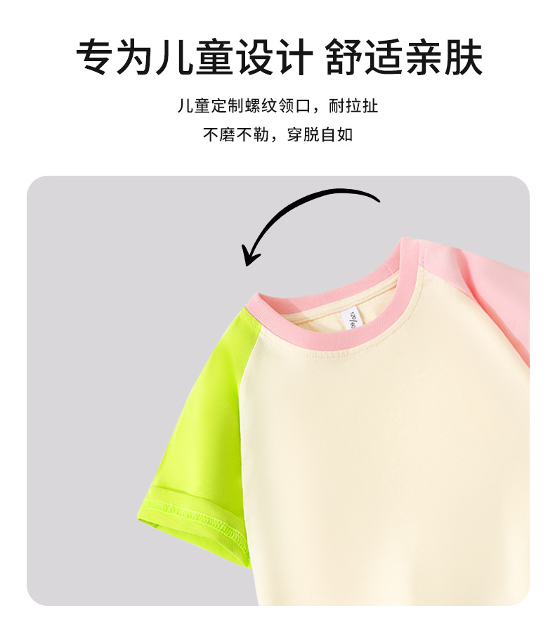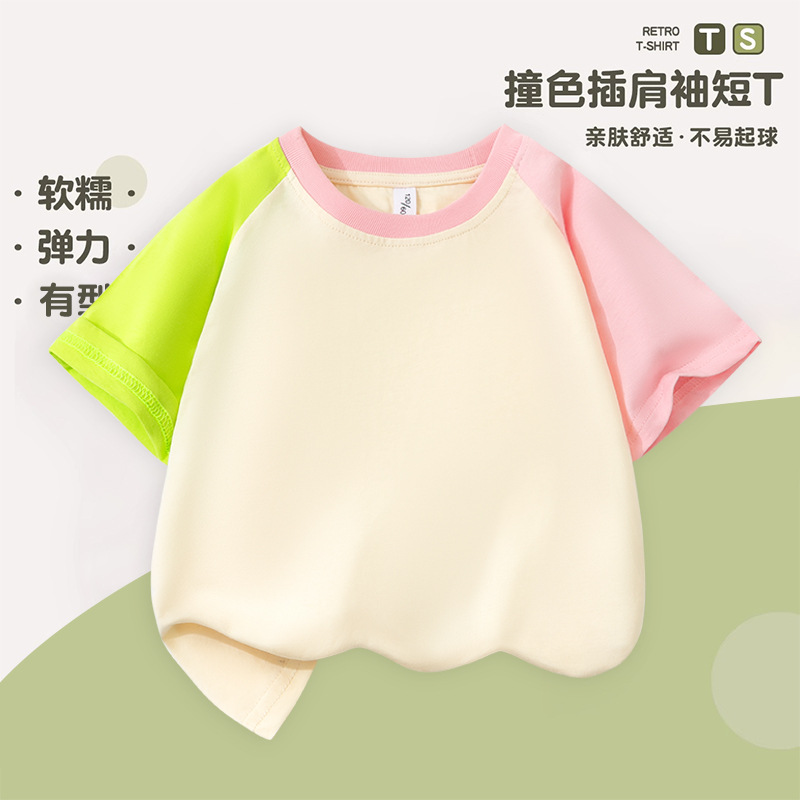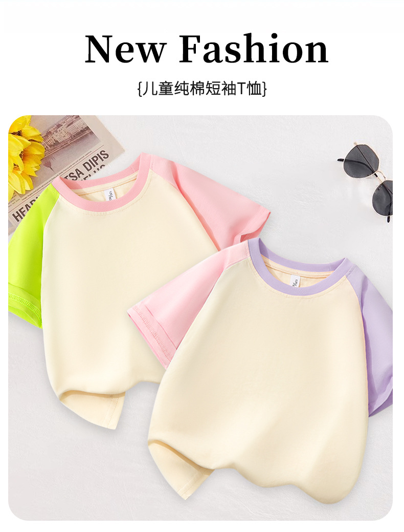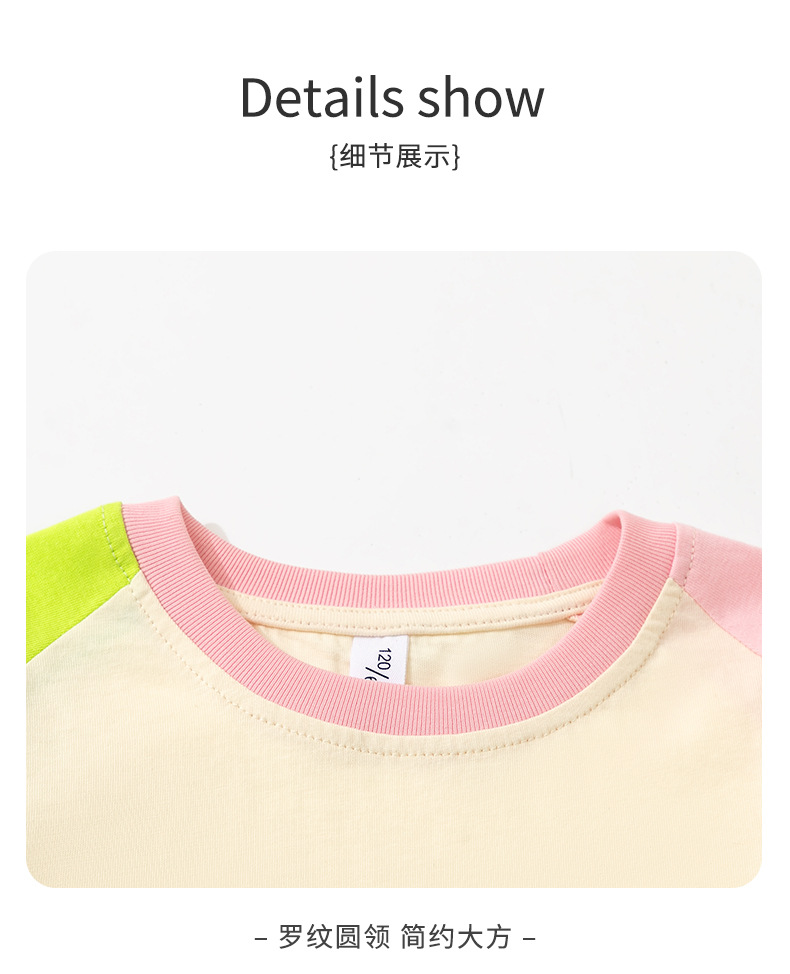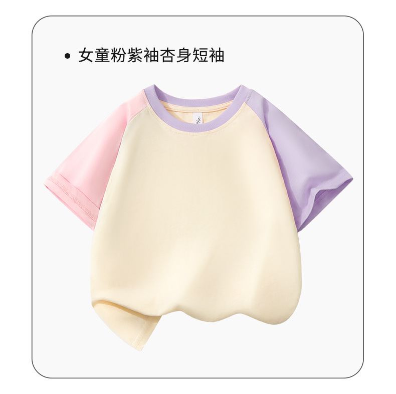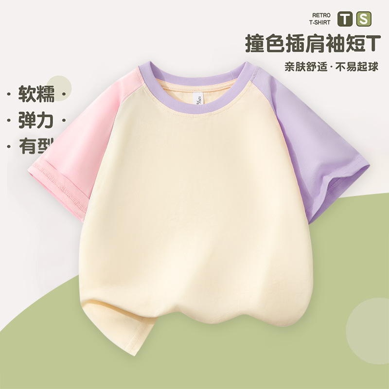 여아 라글란 반팔 순면 아동 티셔츠 라이트 버전 여름 얇은 라운드 넥 여아 컬러 블록 슬리브 풀오버 탑 트렌디스토어 가기