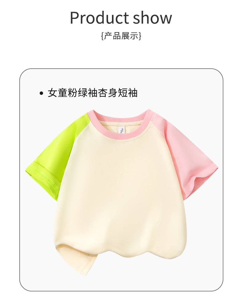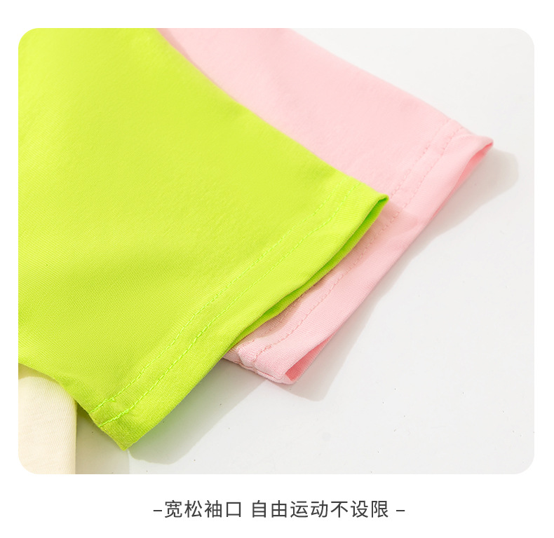 여아 라글란 반팔 순면 아동 티셔츠 라이트 버전 여름 얇은 라운드 넥 여아 컬러 블록 슬리브 풀오버 탑 트렌디