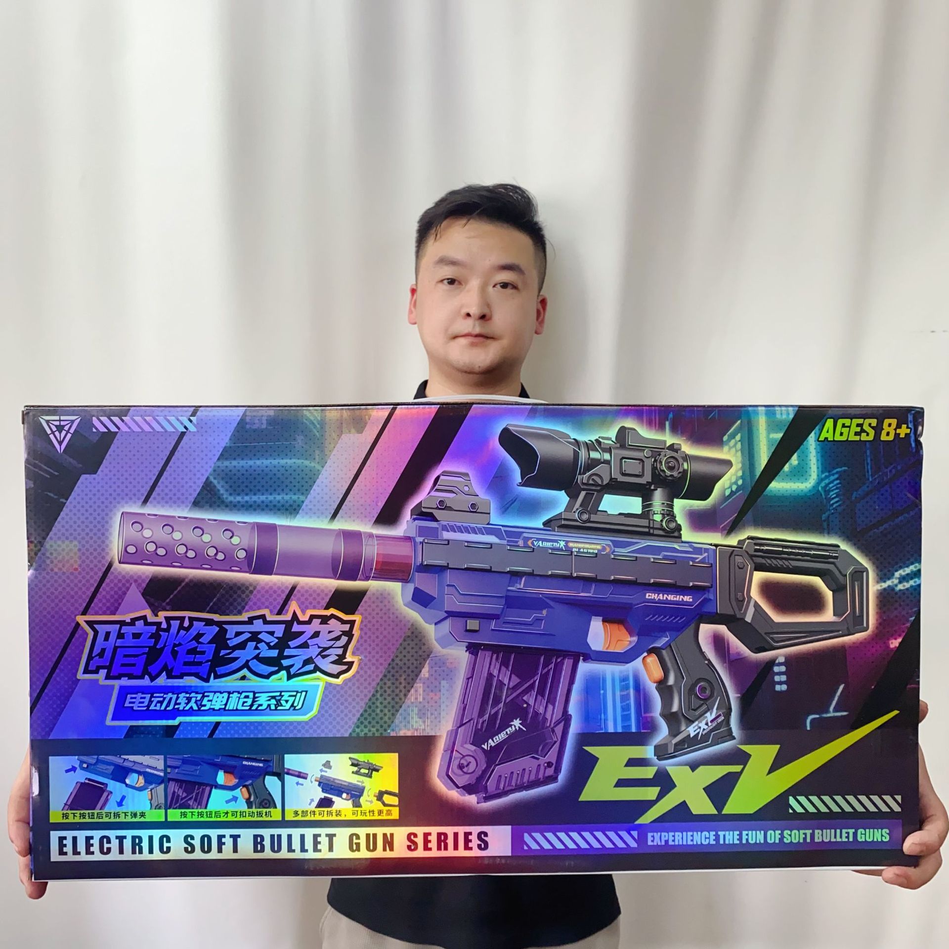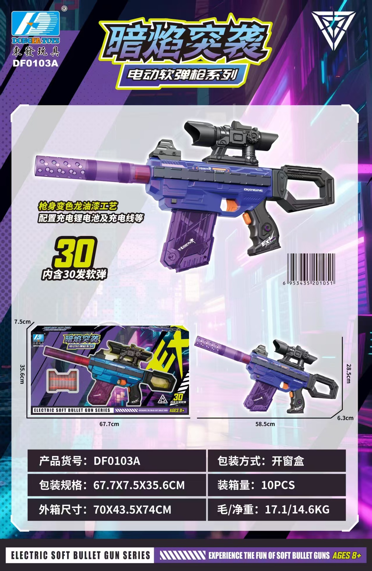 • Dark Flame Raid 전기 소프트 총알 총 2가지 색상이 무작위로 발행됩니다. 67.7*35.6* 7.5cm .