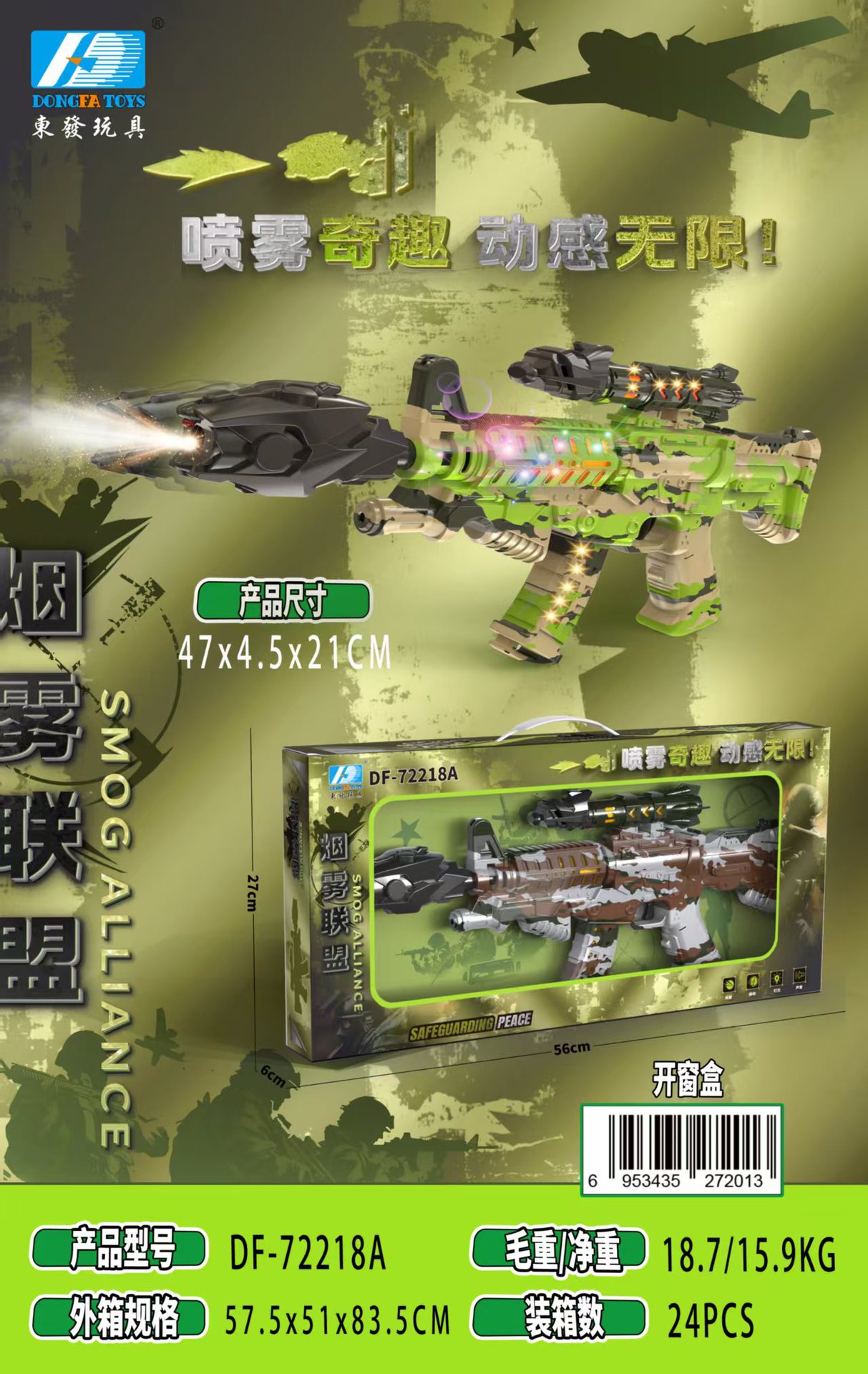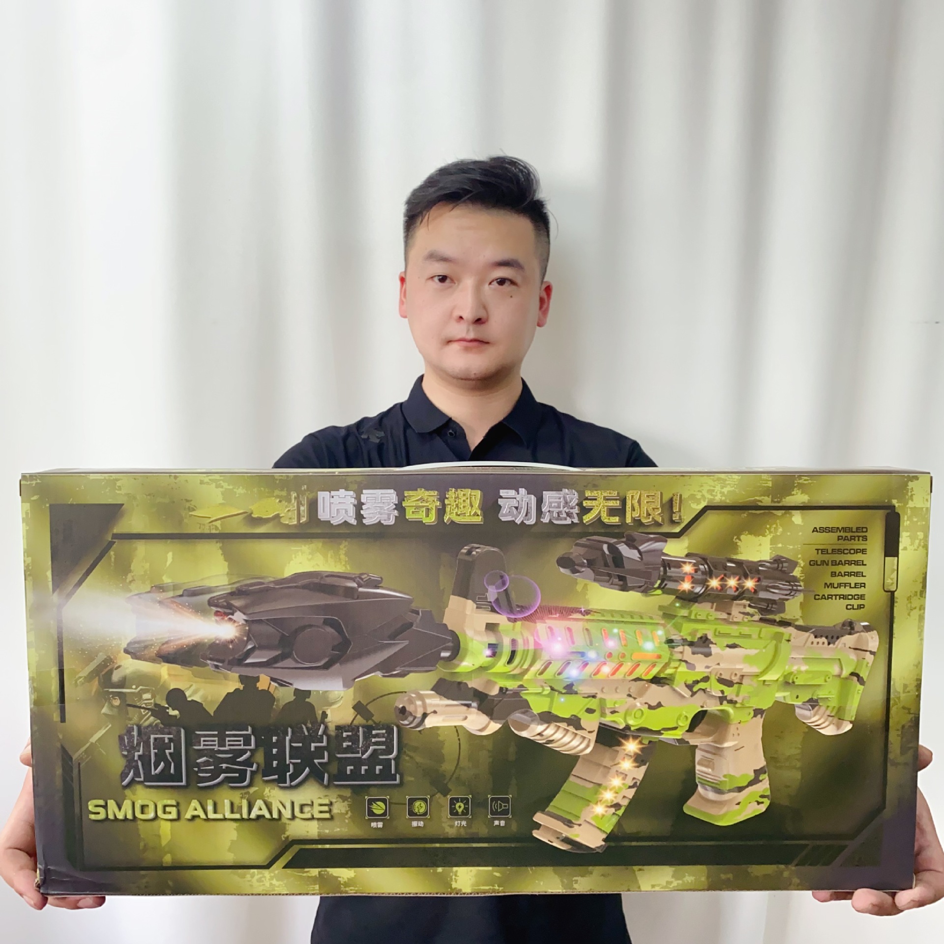 • 연기 동맹 스프레이 다이나믹 사운드 및 가벼운 장난감 총 56*27*6CM2 색상 무작위로 전송