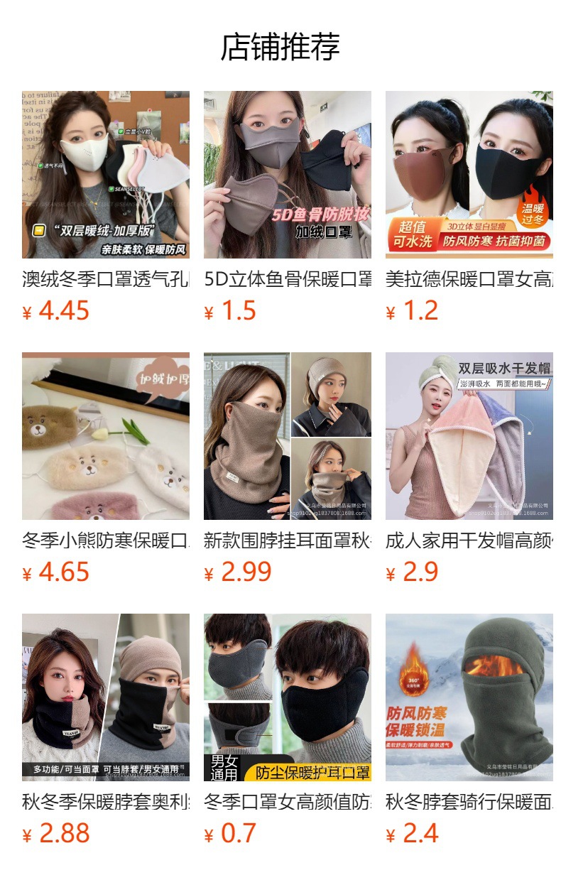 콜라겐 겨울용 보온 마스크 여성용 고급스러운 통기성 단색 방한 자전거용 방풍 니트 마스크 자외선 차단스토어 가기