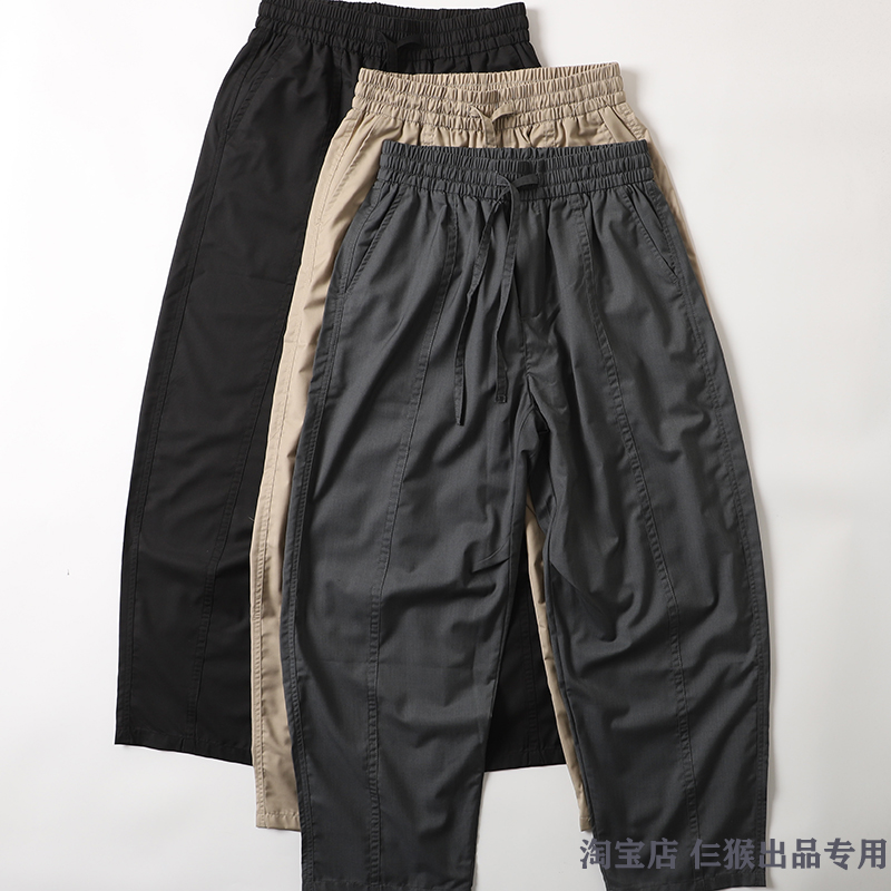 남성용 멋지고 스타일리시한 일본식 여름 얇은 루즈한 와이드 레그 테이퍼드 당근 팬츠 일본식 통기성 솔리드 컬러 캐주얼 바지스토어 가기