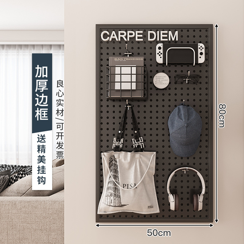 • [후크 20개 무료] [프레임 포함, 두꺼운 버전] 80×50cm-블랙 ★