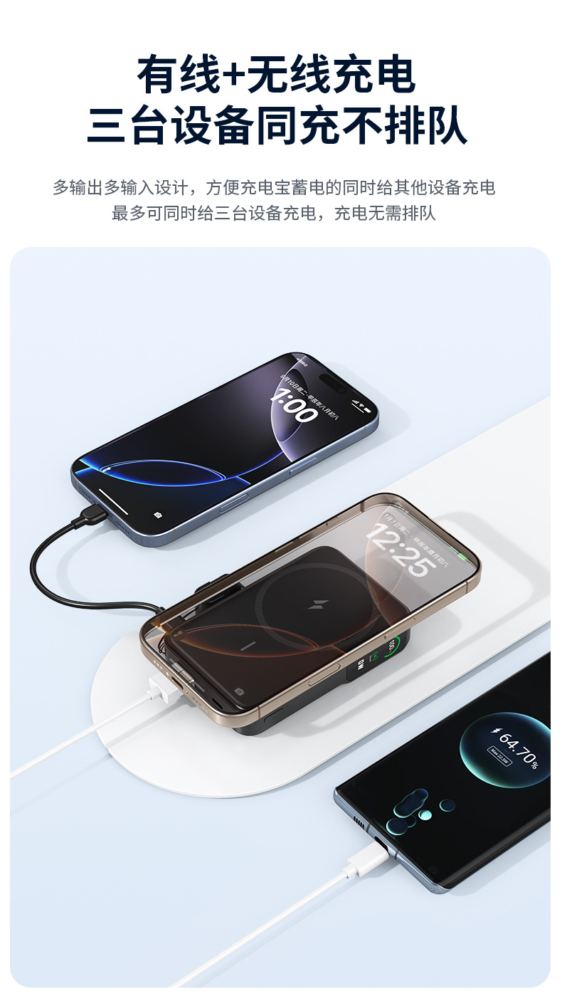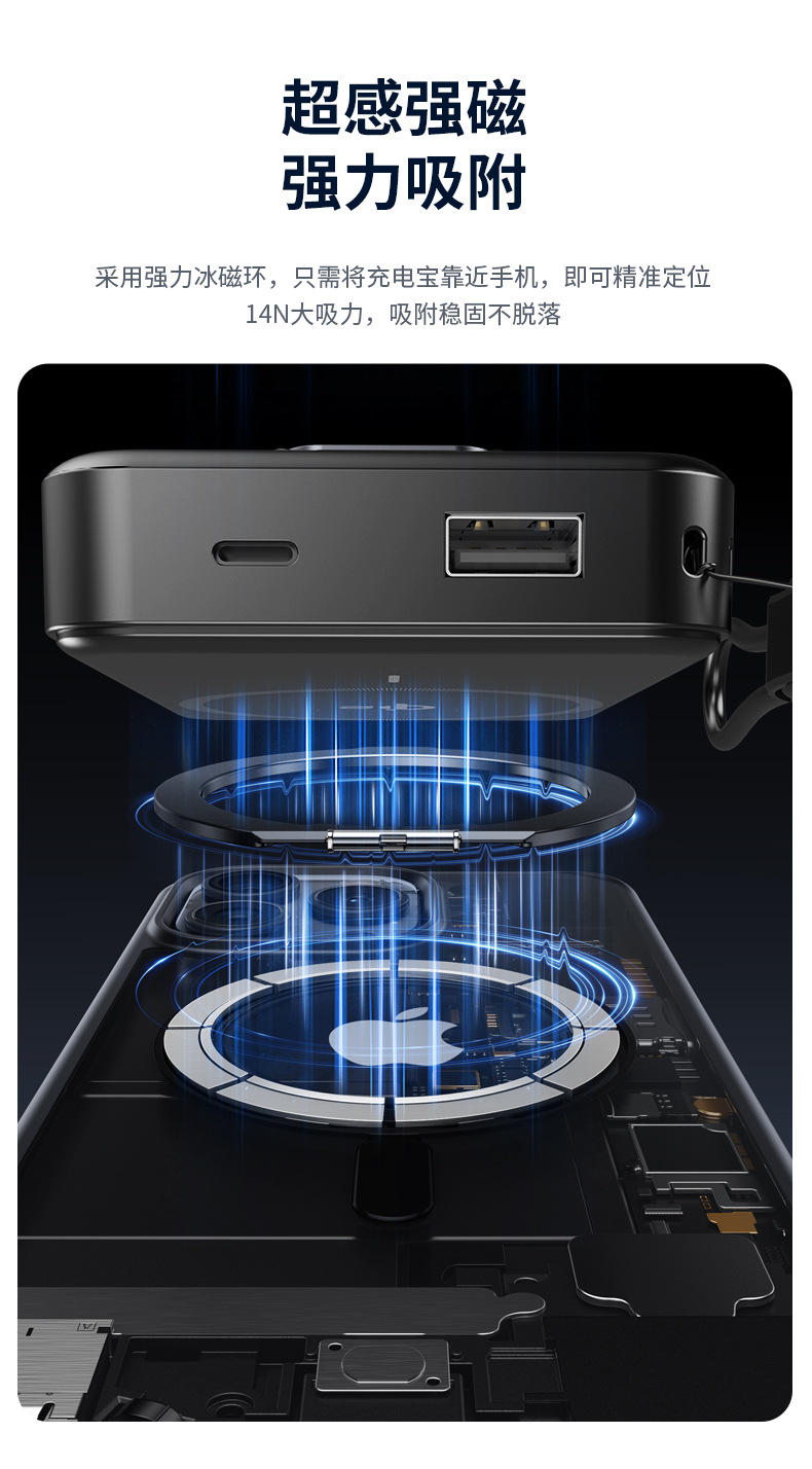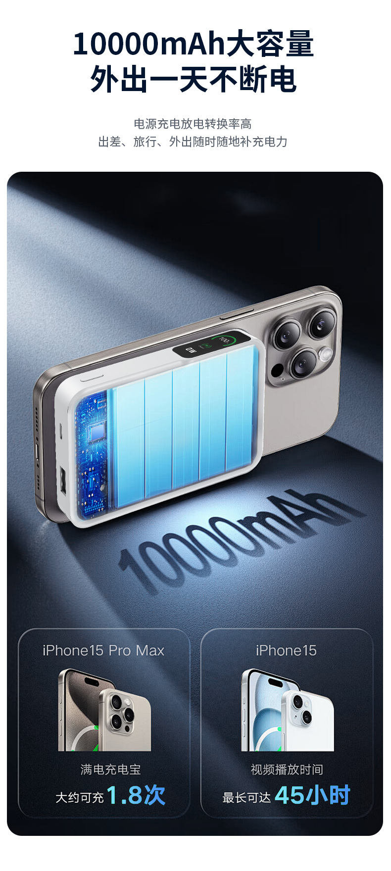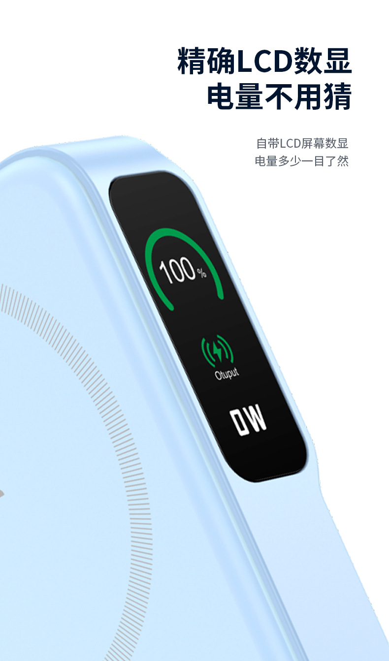 자기 무선 보조베터리 10000mAh 모바일 전원 공급 장치에는 브래킷이 있는 자동 깨우기 기능이 있는 LCD 디스플레이가 함께 제공됩니다.스토어 가기