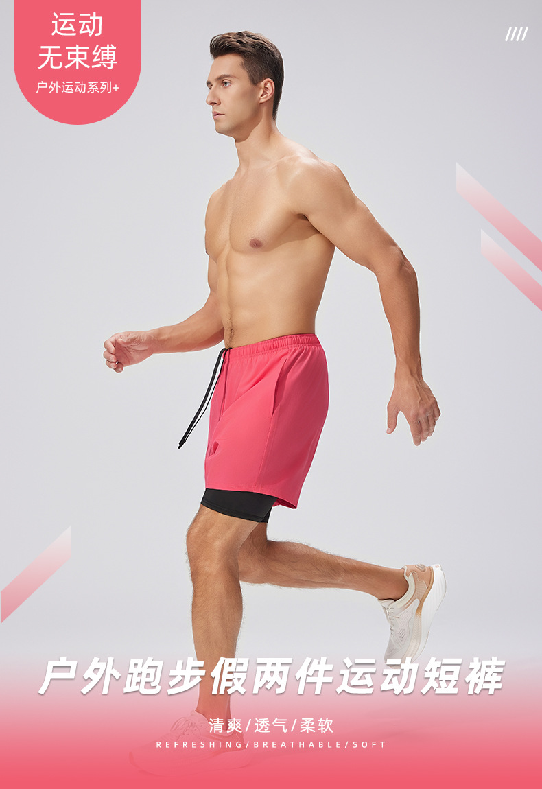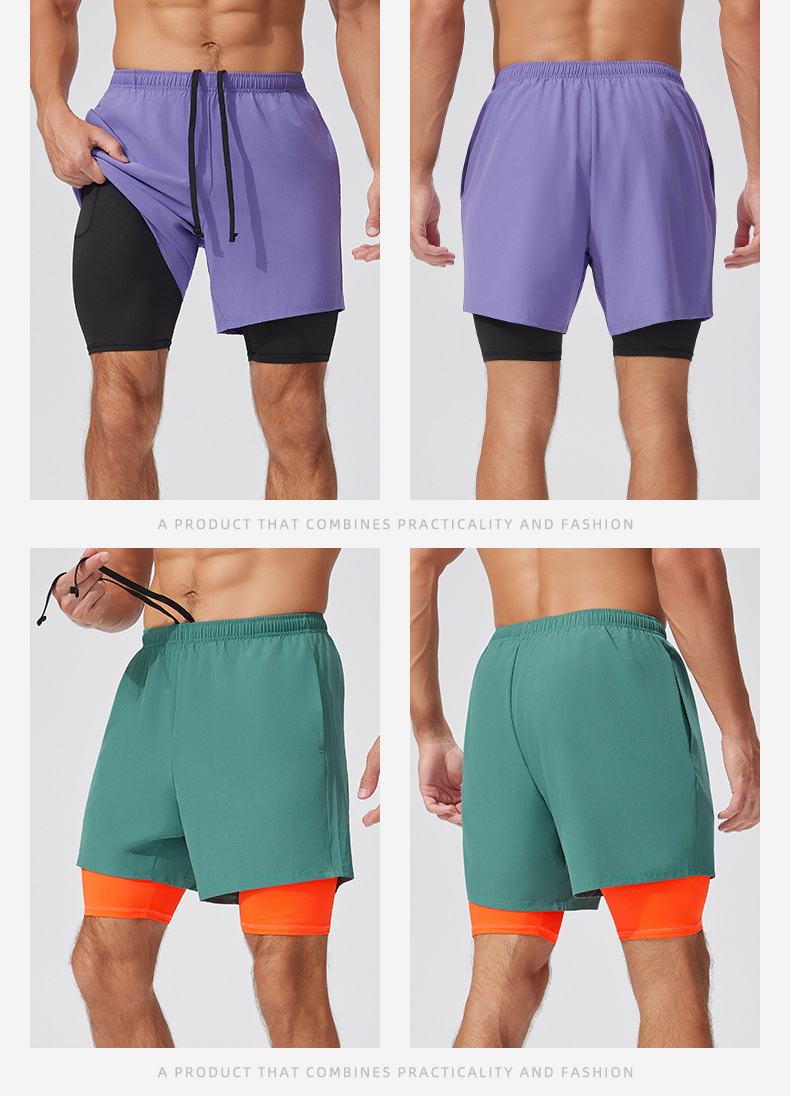 야외 러닝 스포츠 반바지 크로스보더 대형 통기성 트레이닝 남성용 탄성 안감 노출 방지 가짜 투피스 반바지스토어 가기
