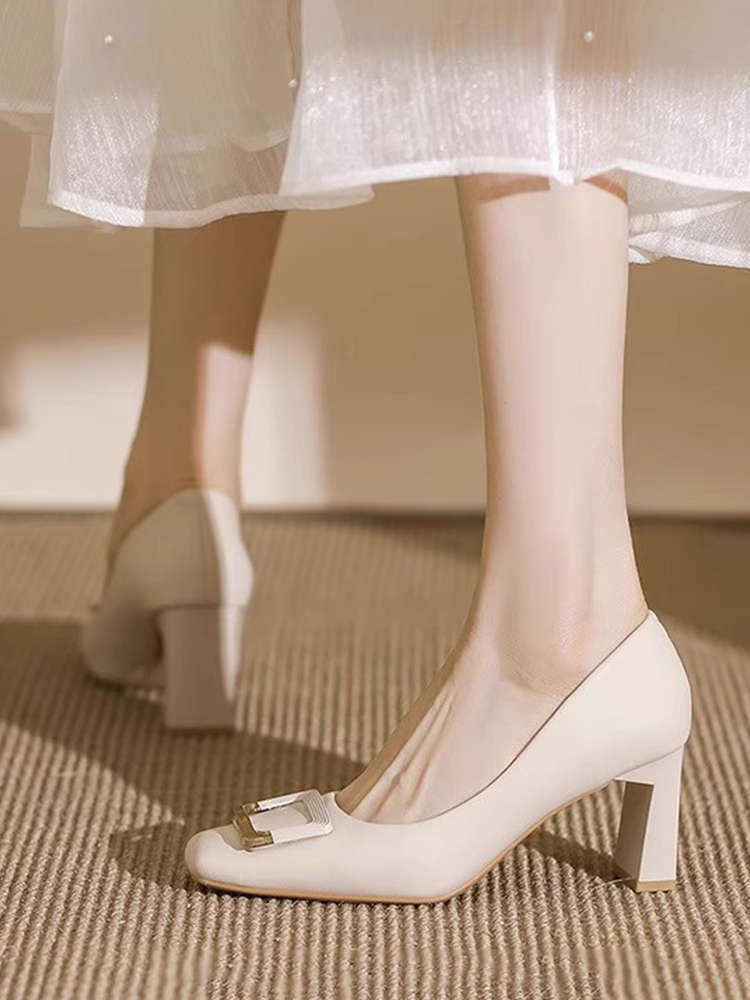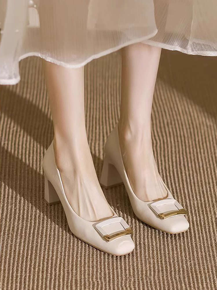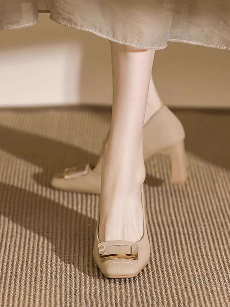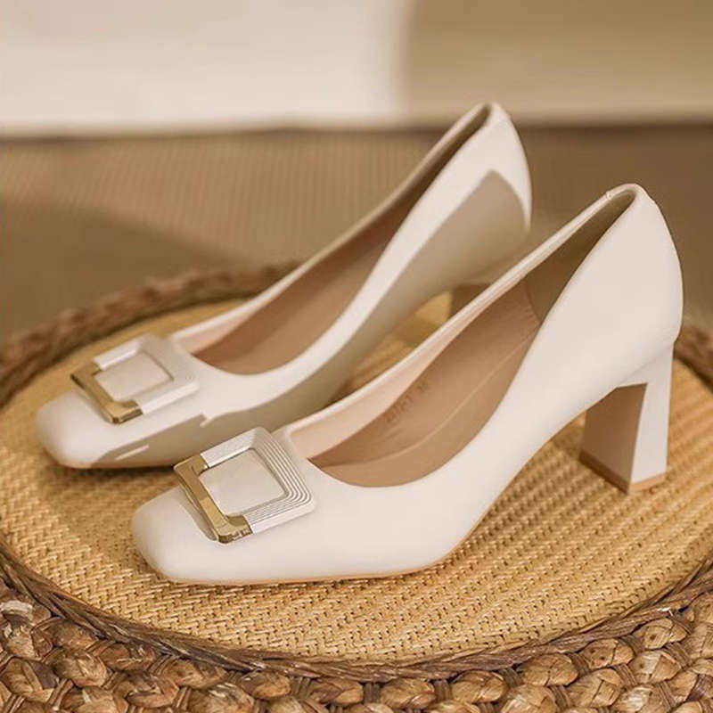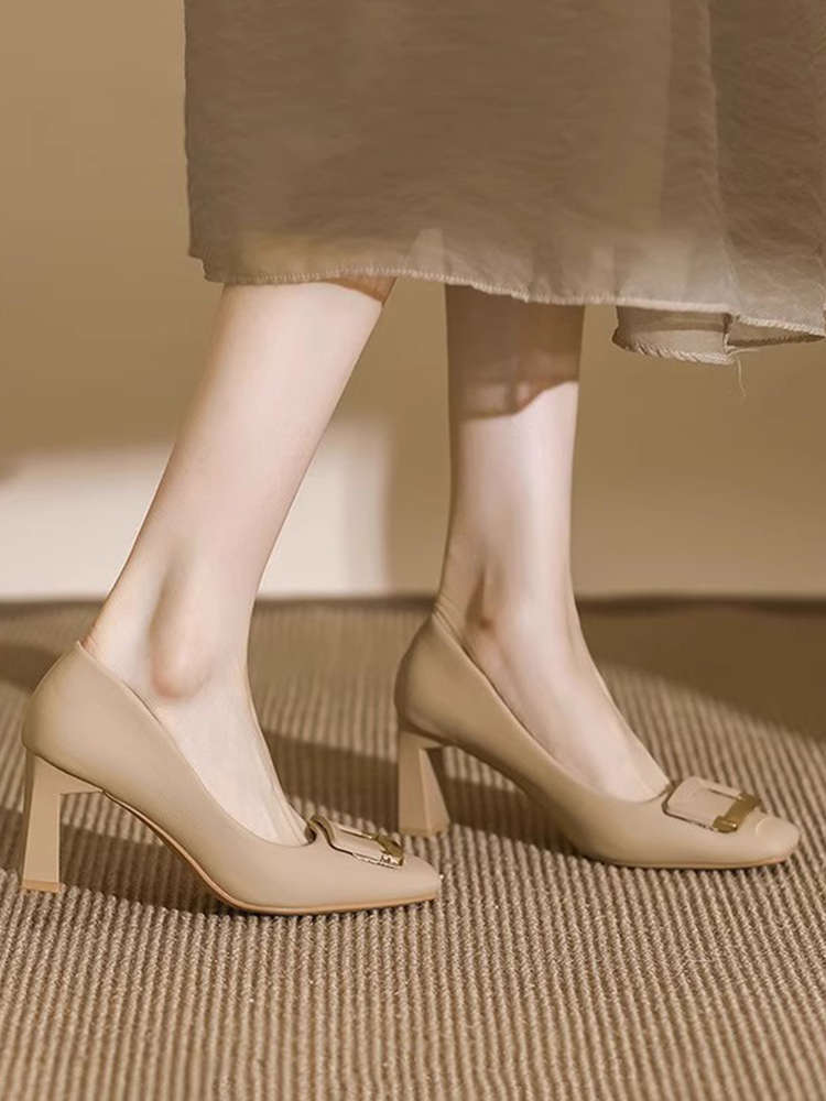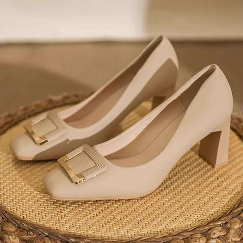 여성을 위한 두꺼운 굽의 스퀘어 토 하이힐 2025 봄 여름 새로운 스타일 프렌치 여성스러운 스타일의 단화, 우아하고 패셔너블한 작은 가죽 신발스토어 가기