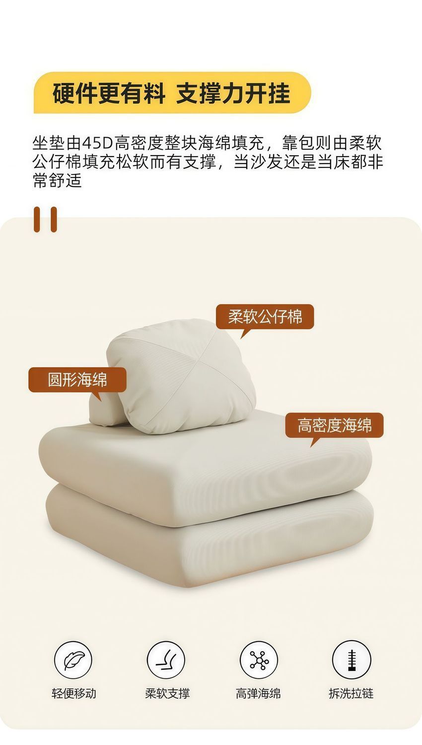 • 카라멜색상丨코듀로이丨45D 고탄성 스펀지
