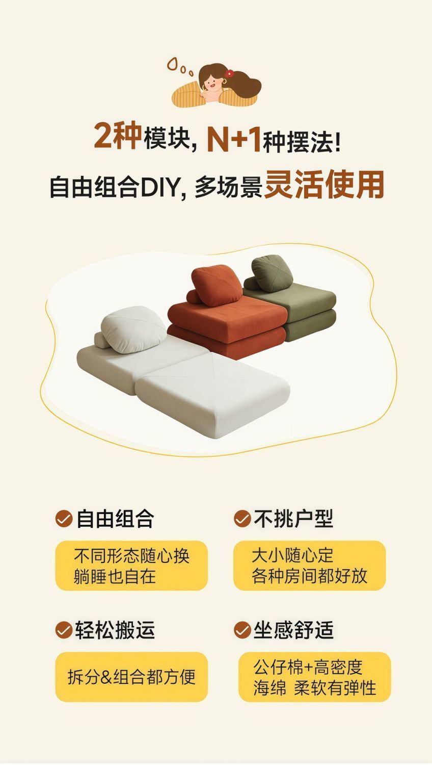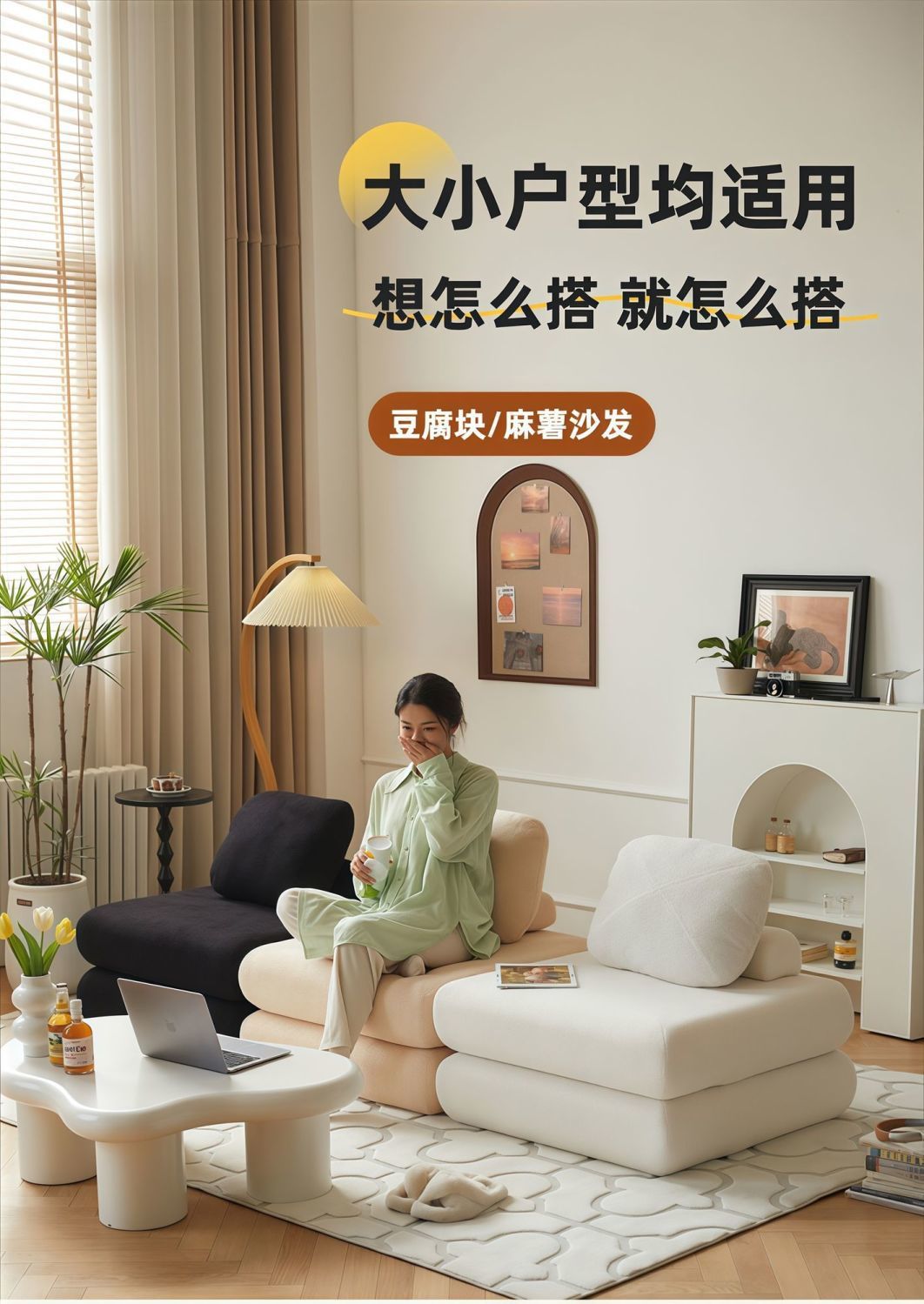 2025년 새로운 스타일의 접이식 소파 베드, 게으른 두부 블록, 작은 아파트, 싱글 맞춤형, 탈부착 및 세탁 가능한 모찌 블록 소파 베드스토어 가기