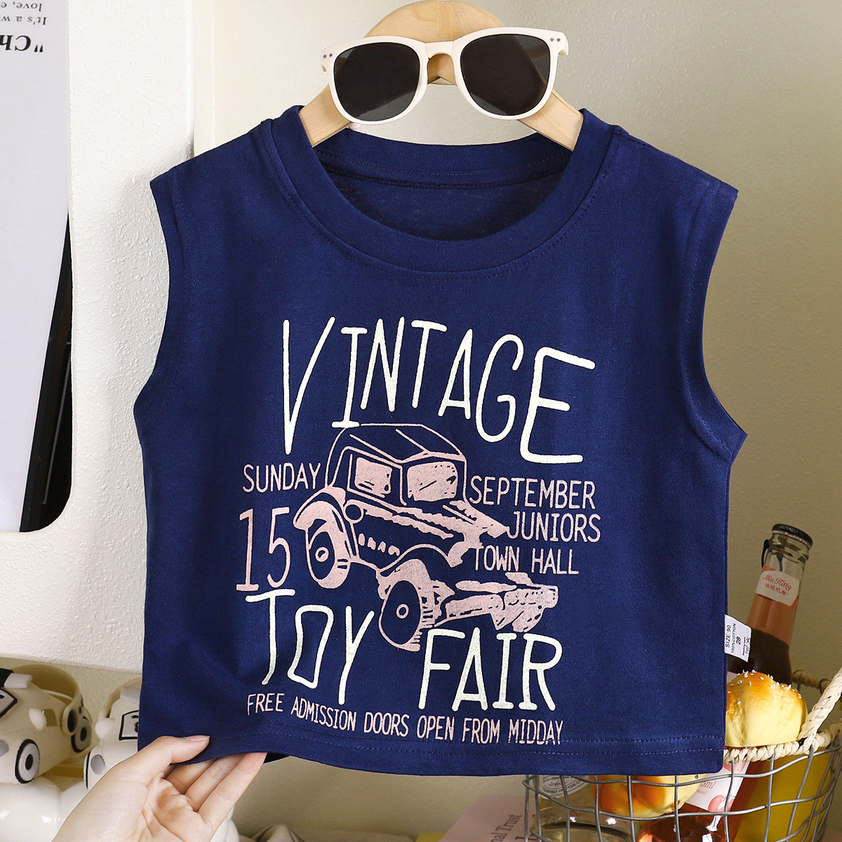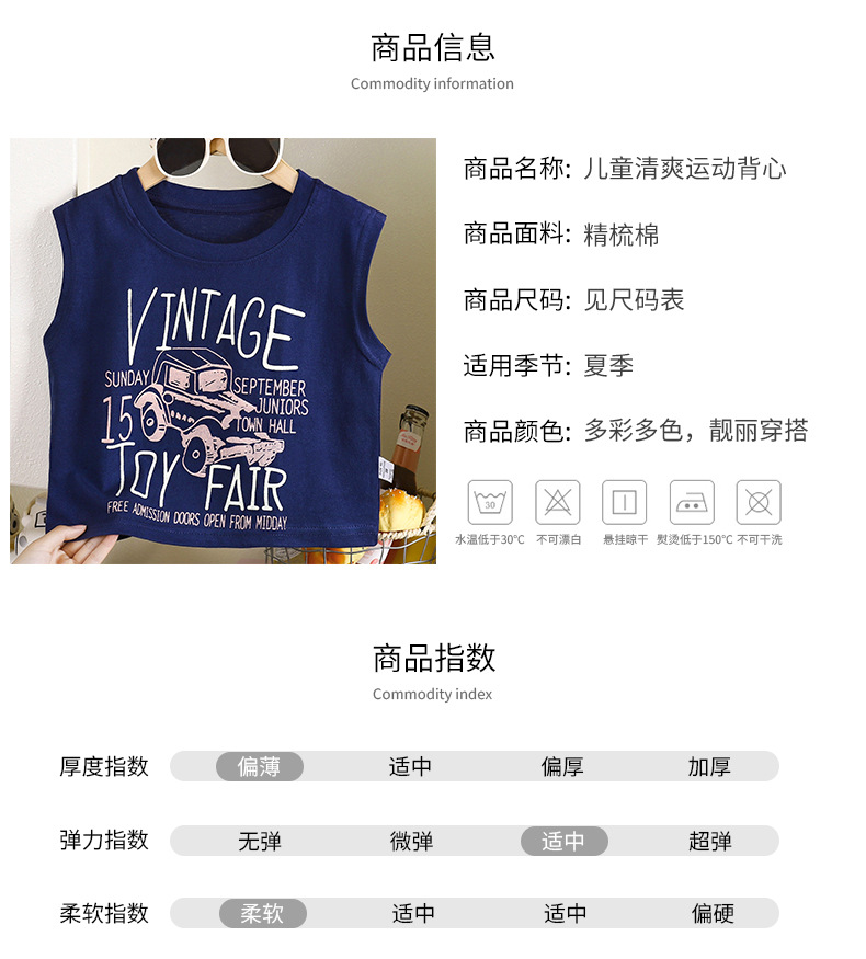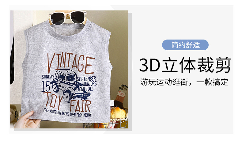 100% 면 소년 인쇄 캐주얼 조끼 2025 새로운 여름 만화 양복 조끼스토어 가기