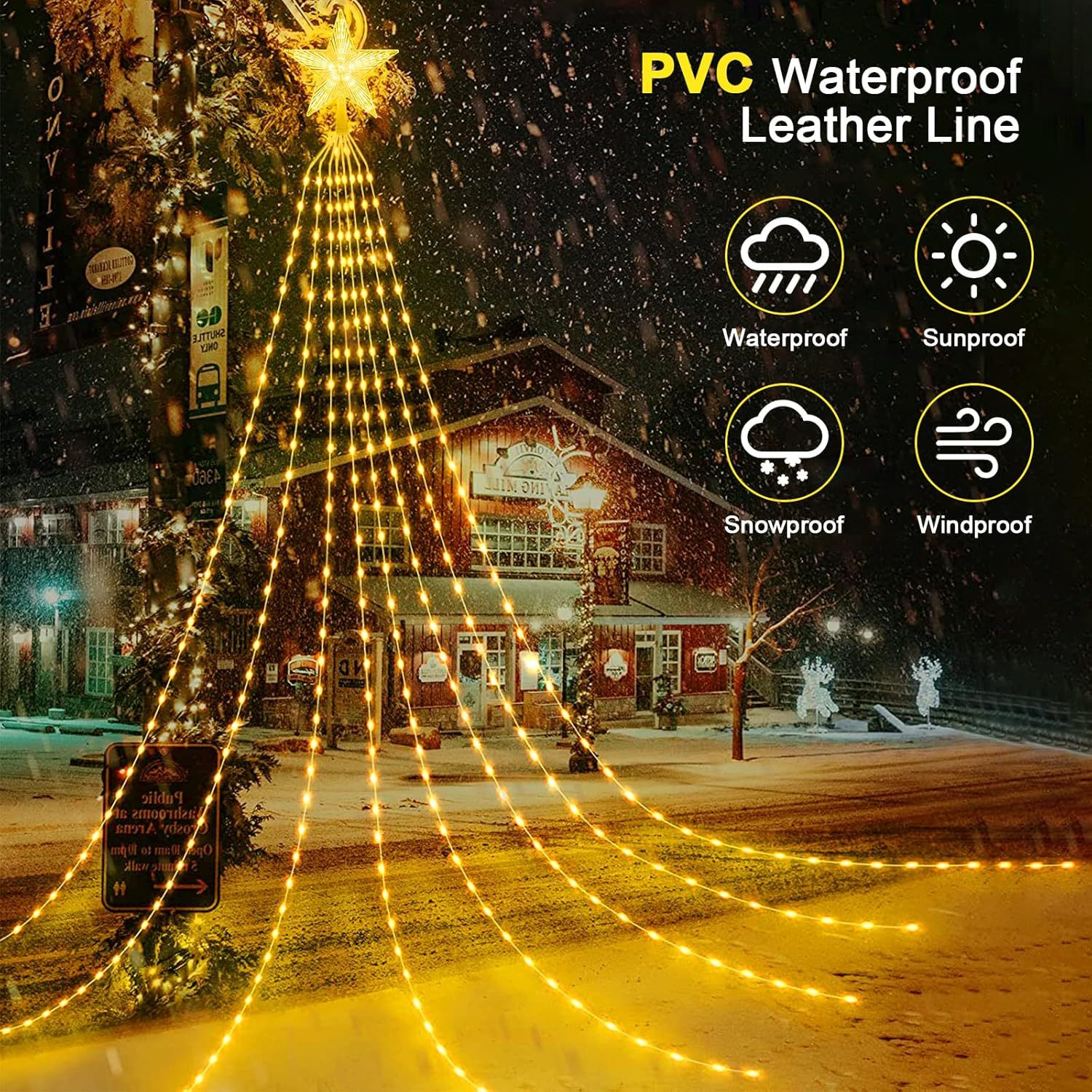 국경 간 새로운 led 가죽 라인 폭포 빛 야외 안뜰 휴일 장식 빛 방수 전원 공급 장치 크리스마스 트리 빛 문자열스토어 가기