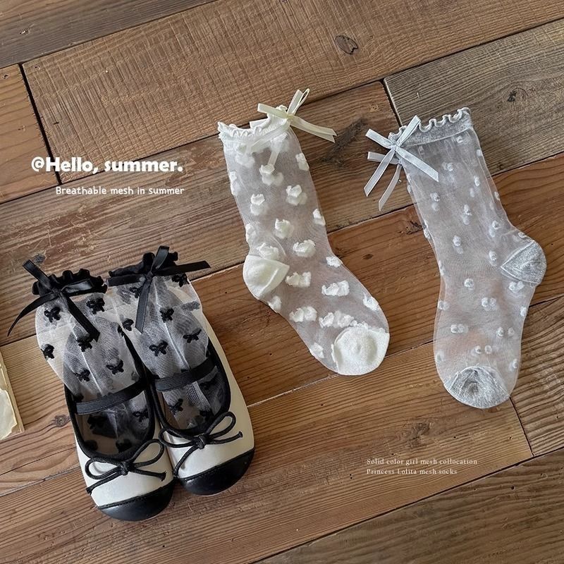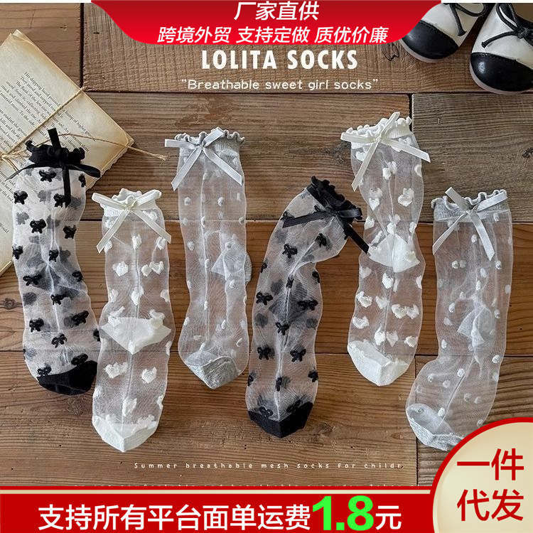여름 얇은 통기성 소녀 양말 경량 유리 실크 중간 튜브 양말 어린이 한국 스타일 달콤한 사랑 얼음 실크스토어 가기