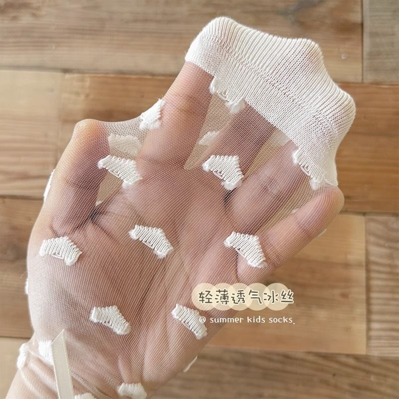 여름 얇은 통기성 소녀 양말 경량 유리 실크 중간 튜브 양말 어린이 한국 스타일 달콤한 사랑 얼음 실크