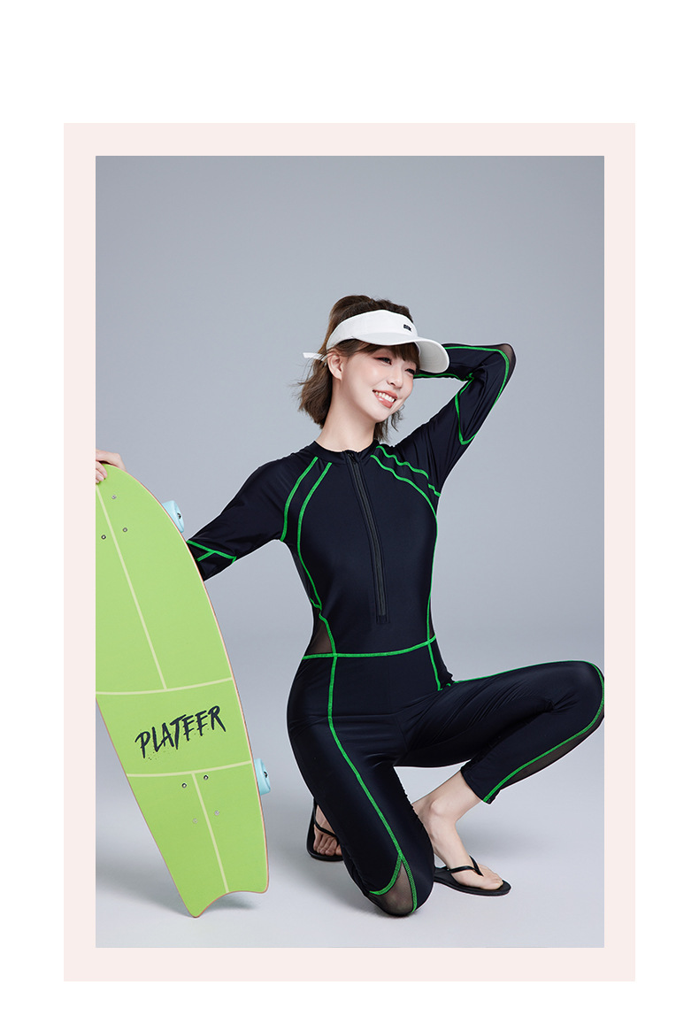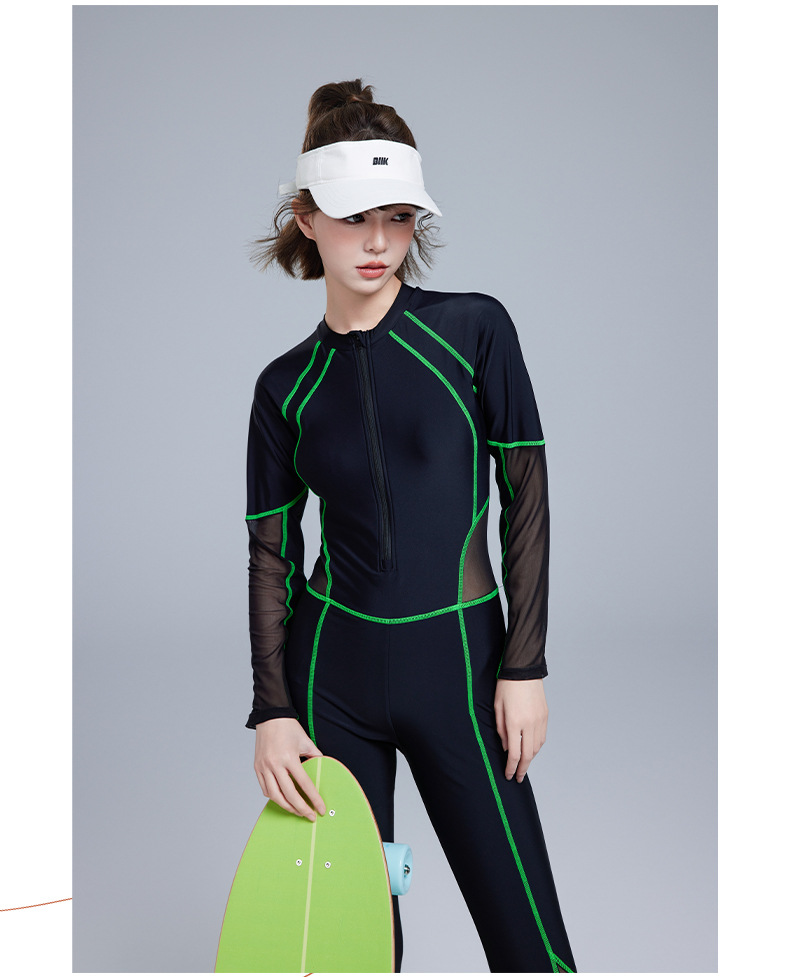 새로운 스포츠 수영복, 잠수복, 서핑 슈트, 긴팔 바지, 여성용 일체형 자외선 차단제 보수적 슬리밍 수영복 2025스토어 가기