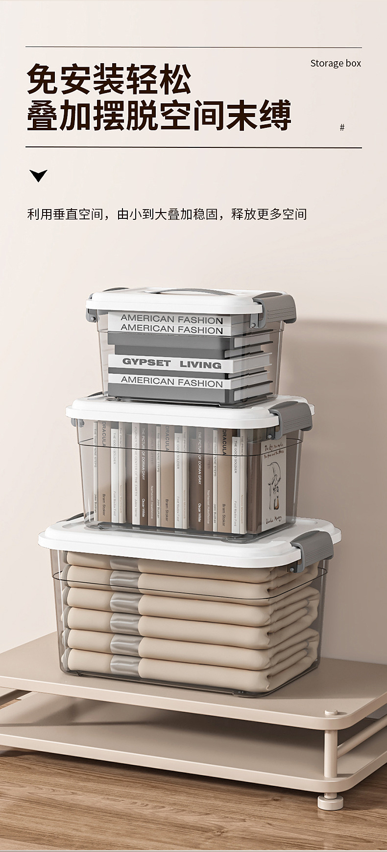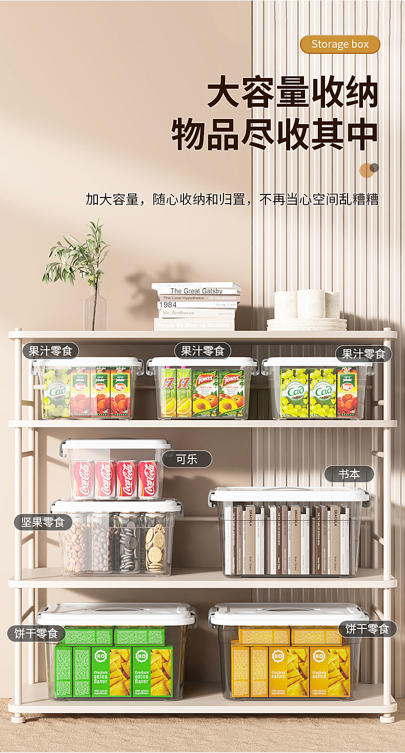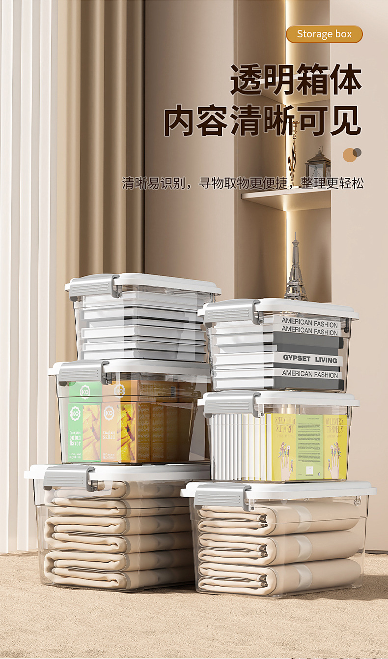 두꺼운 투명 플라스틱 보관 상자, 초대형 옷 및 장난감 보관 상자, 뚜껑이 있는 보관 상자, 스낵 보관 상자스토어 가기