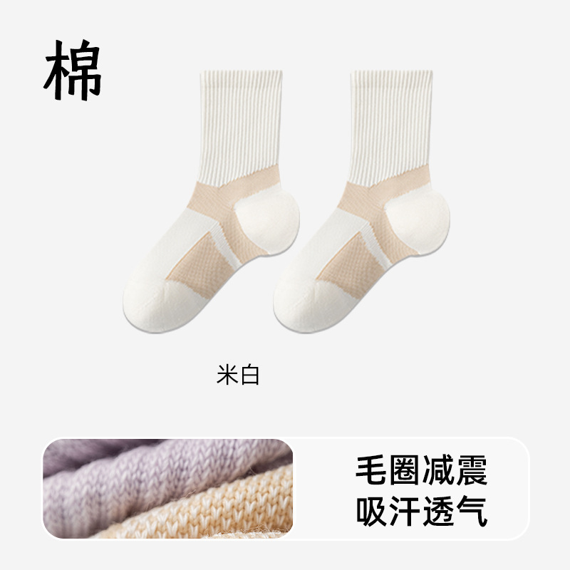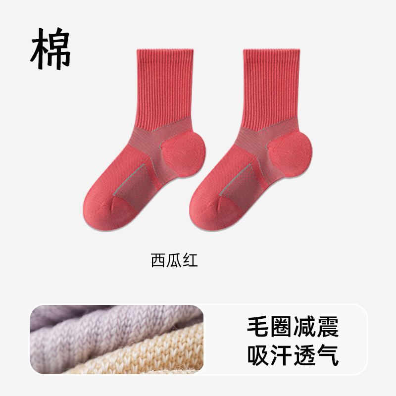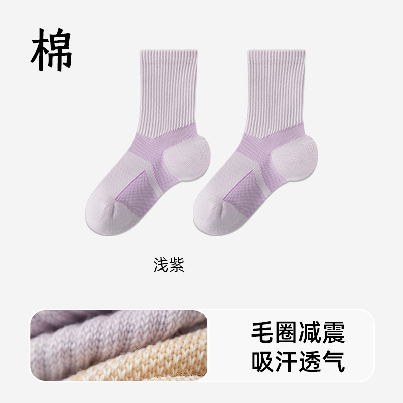 스포츠 양말, 여성용 종아리 중간 면 양말, 미끄럼 방지 수건 바닥, 마라톤 특수 야외 등산 및 하이킹 전문 러닝 양말