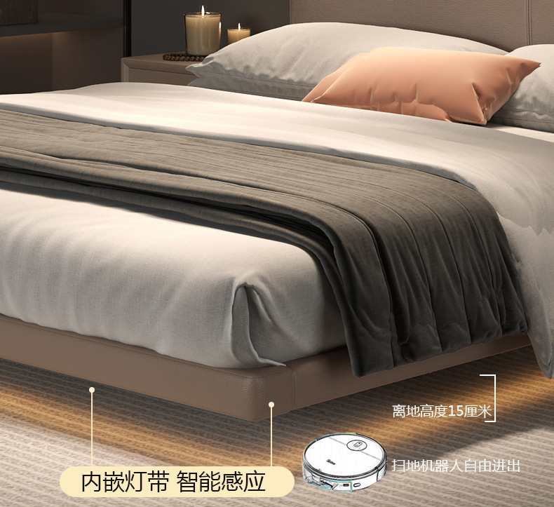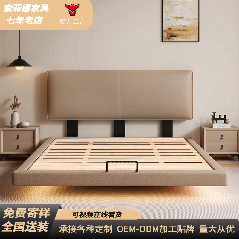 미니멀리스트 공중 침대 더블 침대 마스터 침실 작은 아파트 초박형 침대 옆 침대 현대적인 미니멀리스트 홈 싱글 침대 부드러운 침대스토어 가기