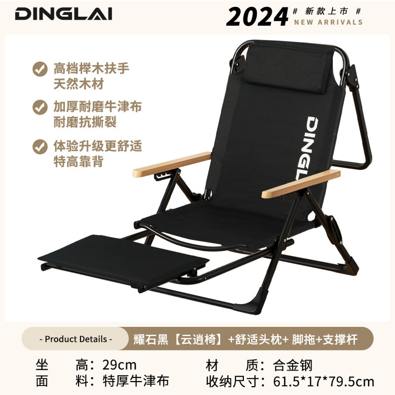 • 하이백 앉기 및 누우기 [너도밤나무 팔걸이] 머리받침 + 편안한 발받침 블랙