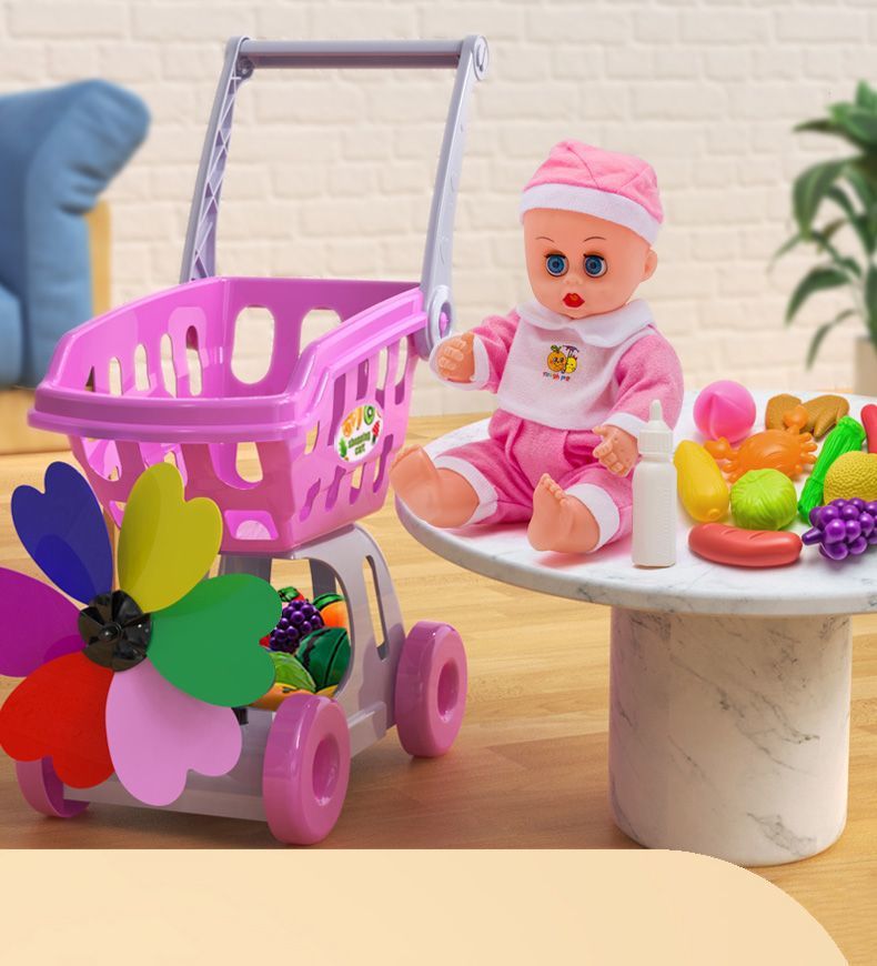 아기 어린이 쇼핑 카트 장난감 소년과 소녀를위한 놀이 집 어린이 유모차 과일 절단 슈퍼마켓 주방