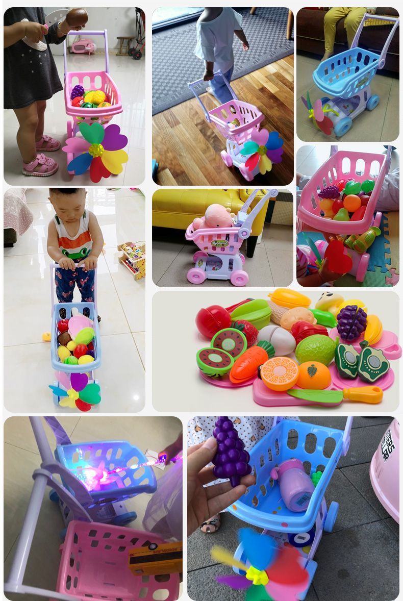 아기 어린이 쇼핑 카트 장난감 소년과 소녀를위한 놀이 집 어린이 유모차 과일 절단 슈퍼마켓 주방스토어 가기