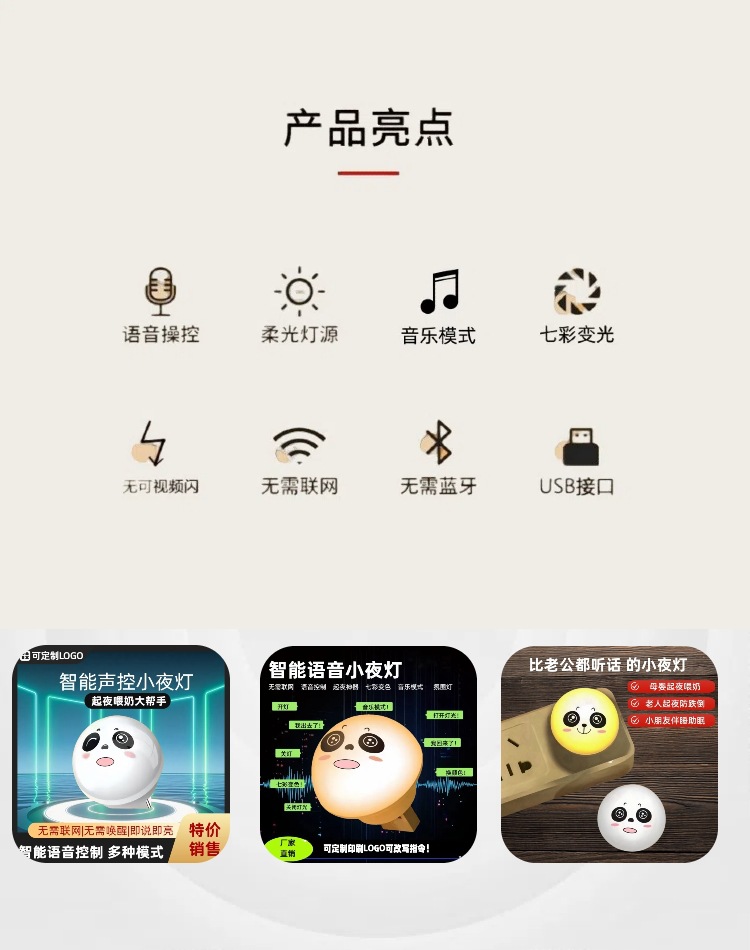 맞춤형 AI 스마트 야간 조명은 여러 국가의 소 언어 개발을 지원합니다. USB 음성 제어 스마트 야간 조명