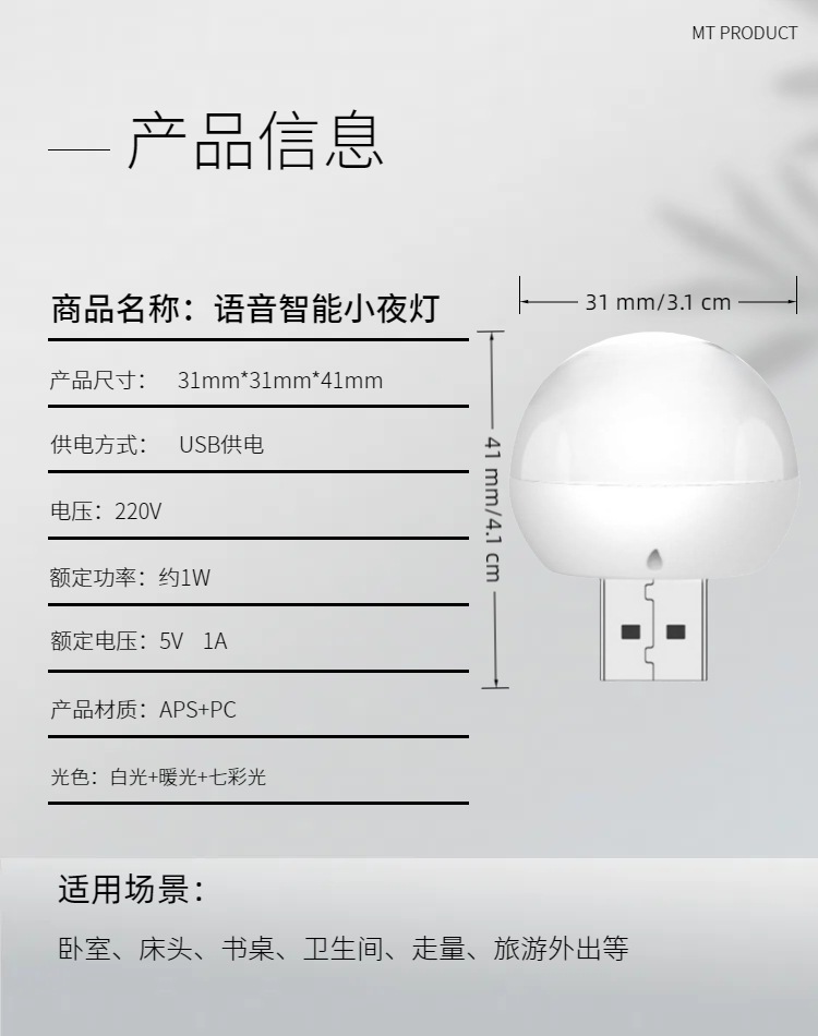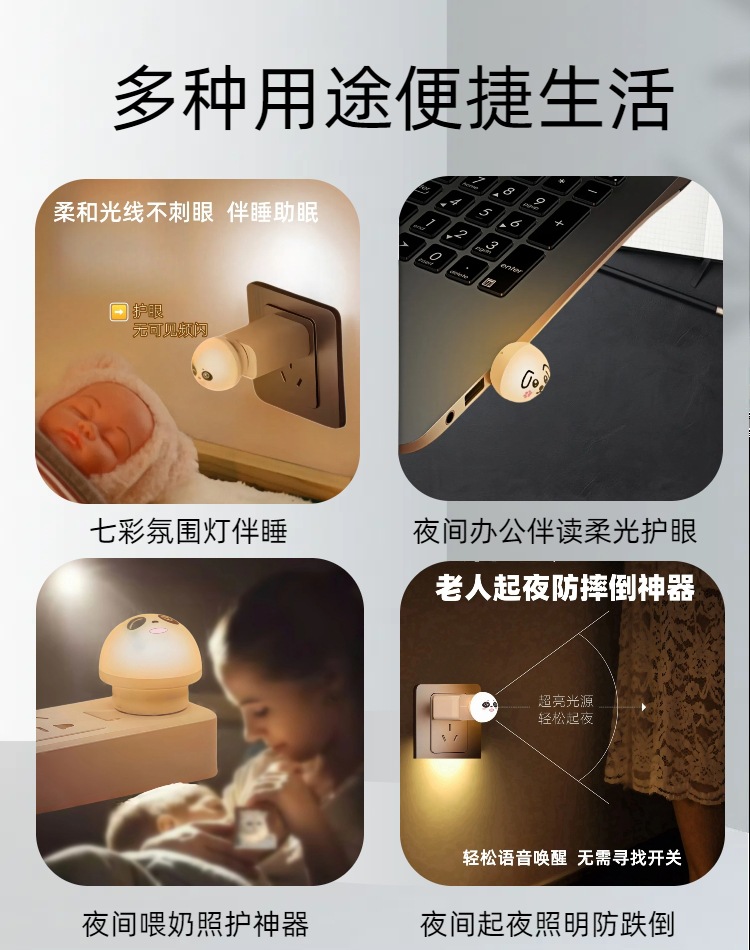 맞춤형 AI 스마트 야간 조명은 여러 국가의 소 언어 개발을 지원합니다. USB 음성 제어 스마트 야간 조명스토어 가기