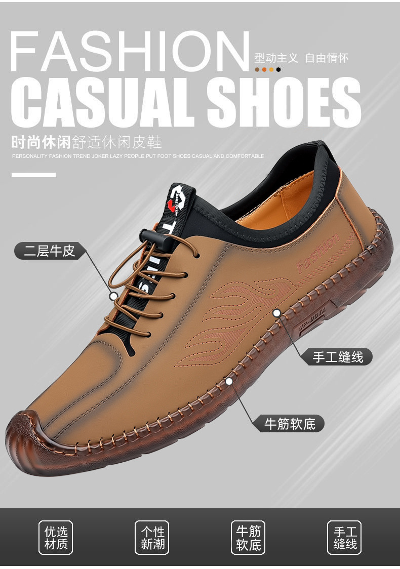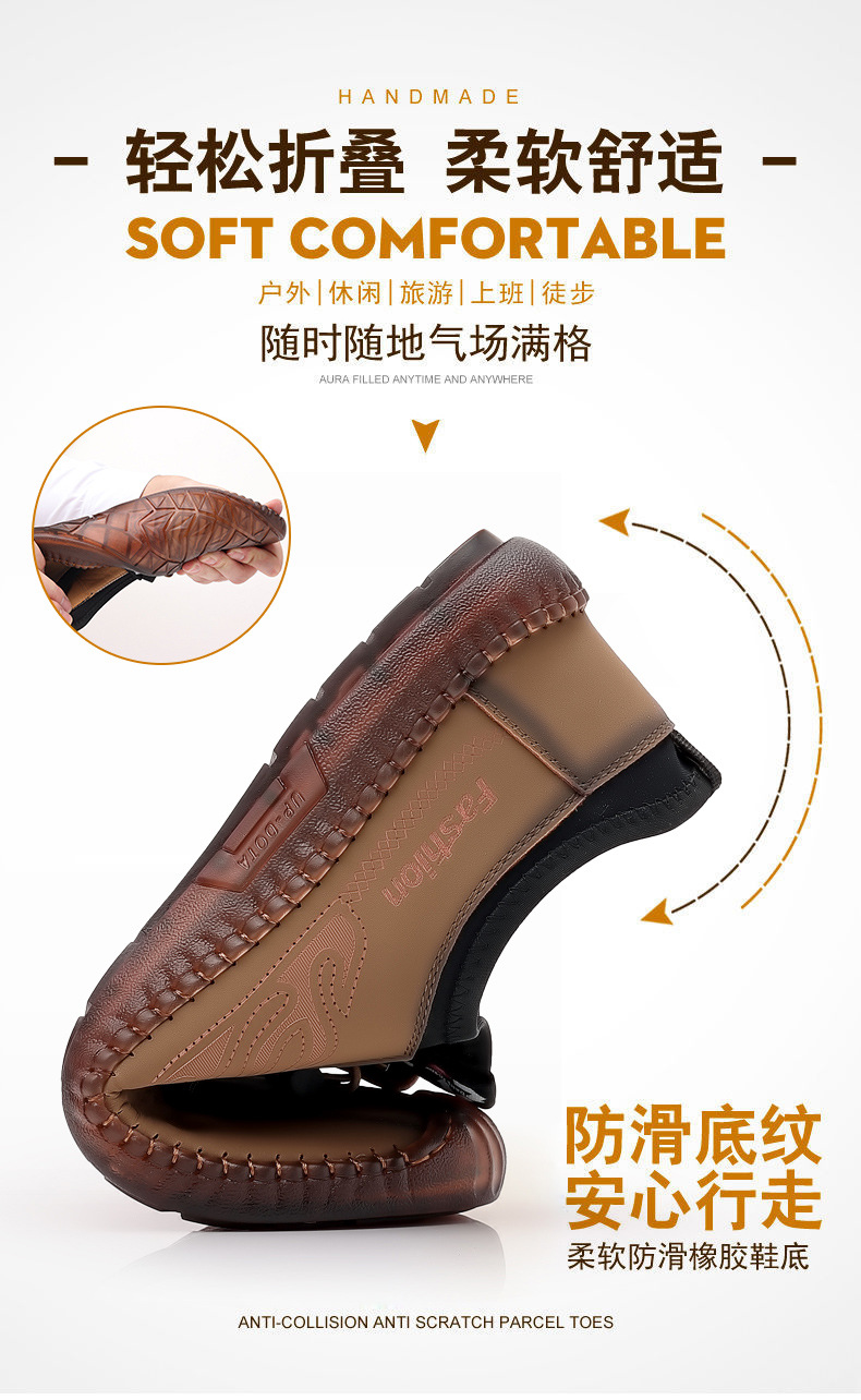 HB Yi Yao 남성 캐주얼 가죽 신발, 천연 가죽 부드러운 밑창 드라이빙 슈즈, 패셔너블하고 다재다능한 아빠 신발, 슬립온 게으른 신발
