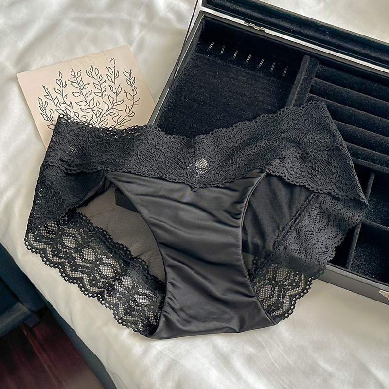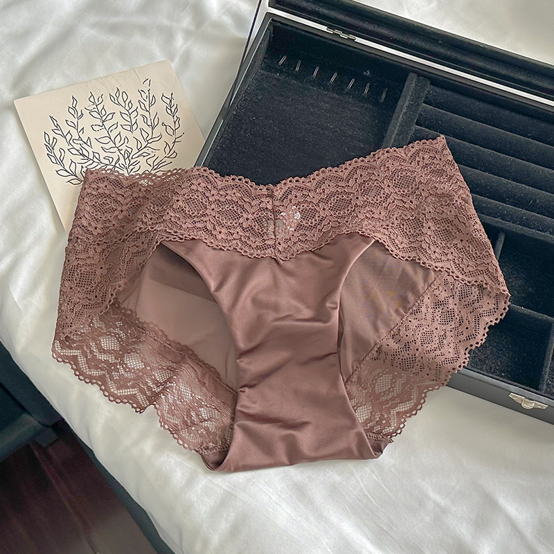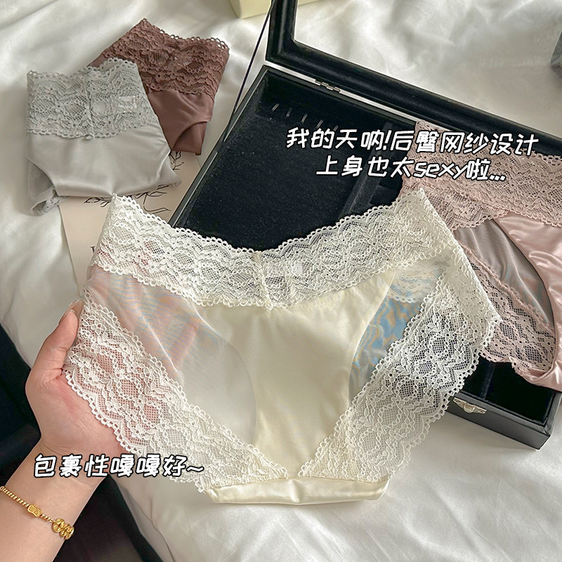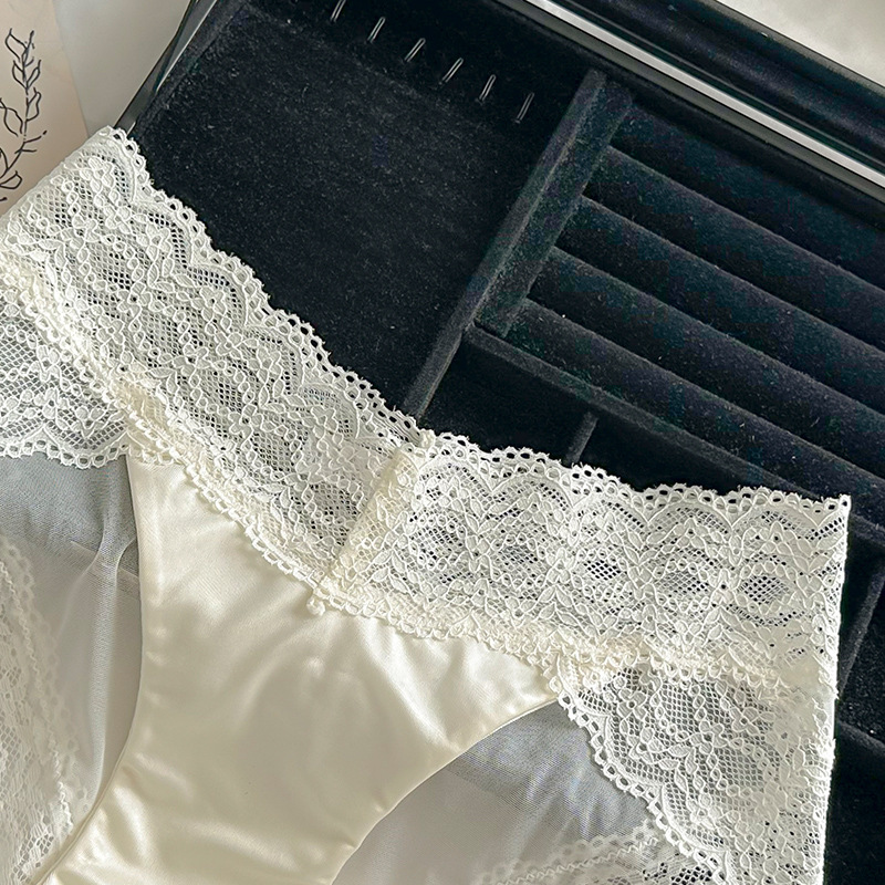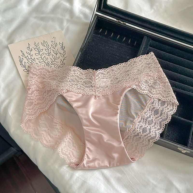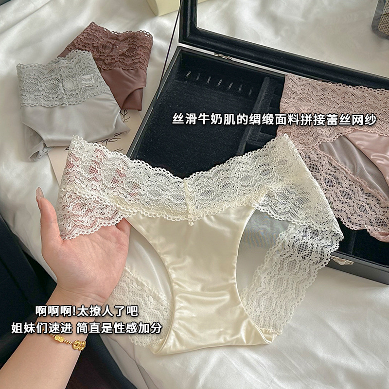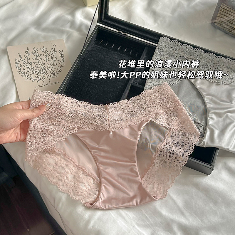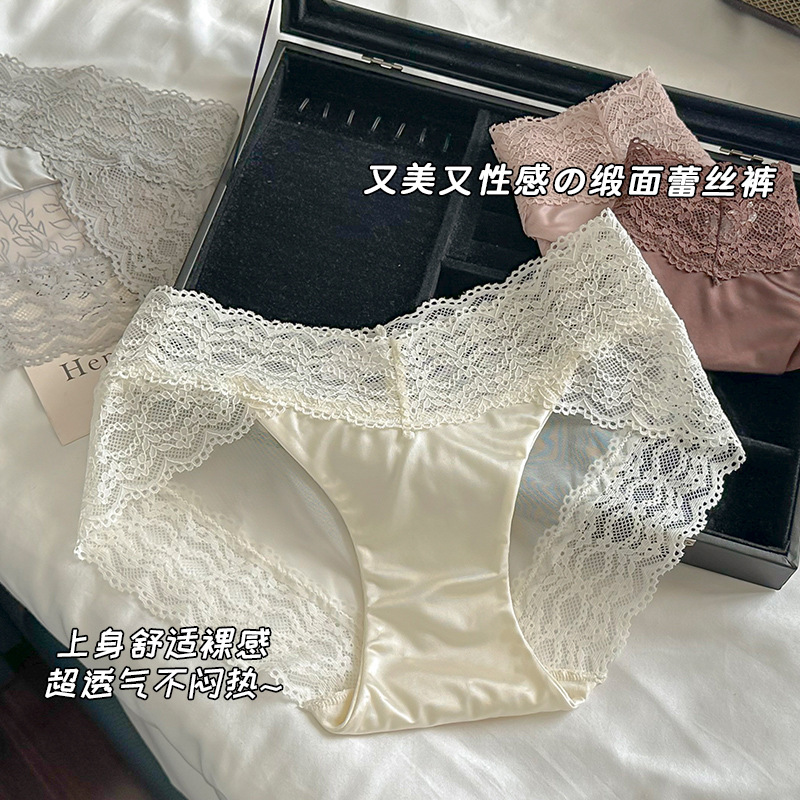 여성용 프렌치 새틴 순수한 욕망 스타일 속옷, 엉덩이를 덮는 자수 레이스 삼각형 반바지, 피부 친화적인 중공 속옷, 편안하고 섹시함스토어 가기