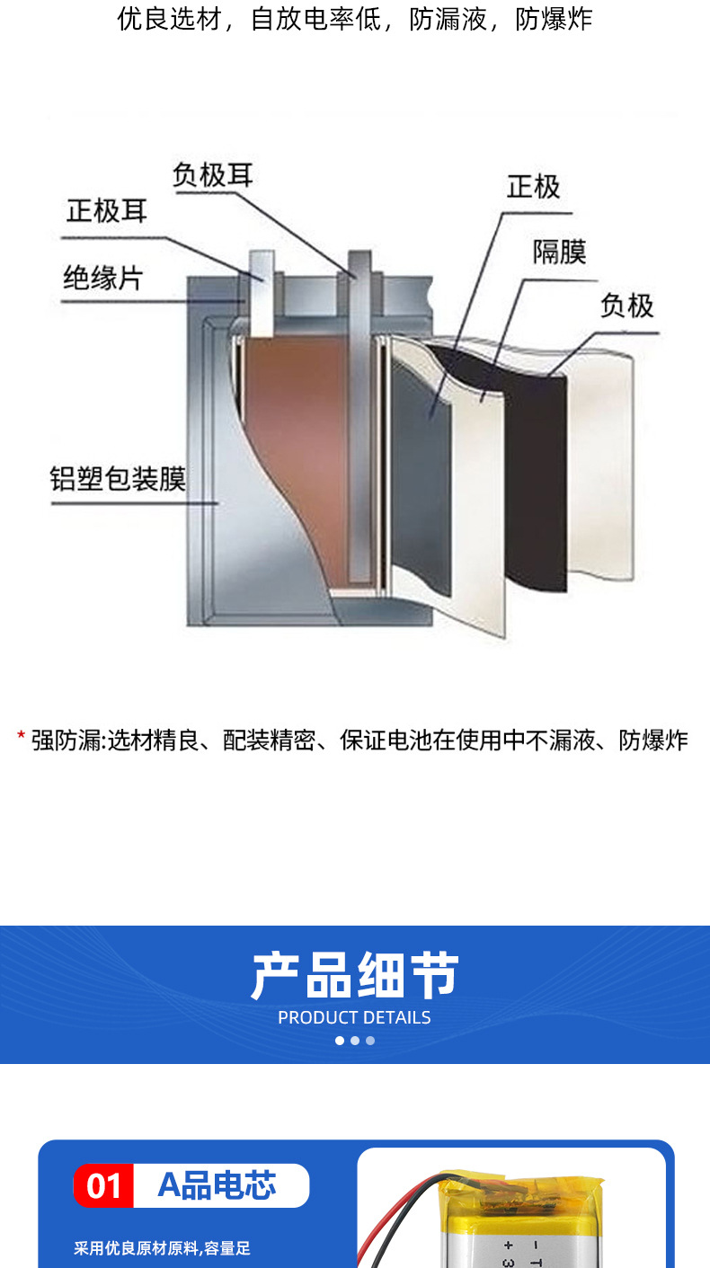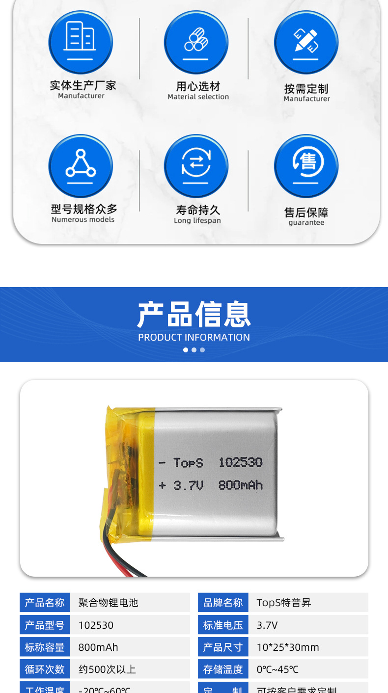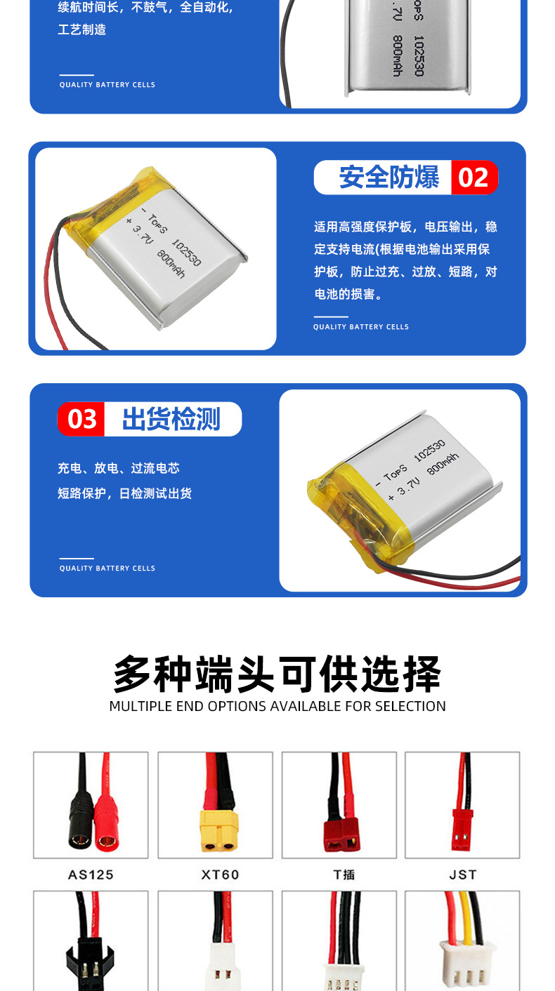 102530 폴리머 리튬 배터리 800mAh 충분한 용량 인증 미용 기기 마우스 스마트 홈 소프트 팩 배터리스토어 가기