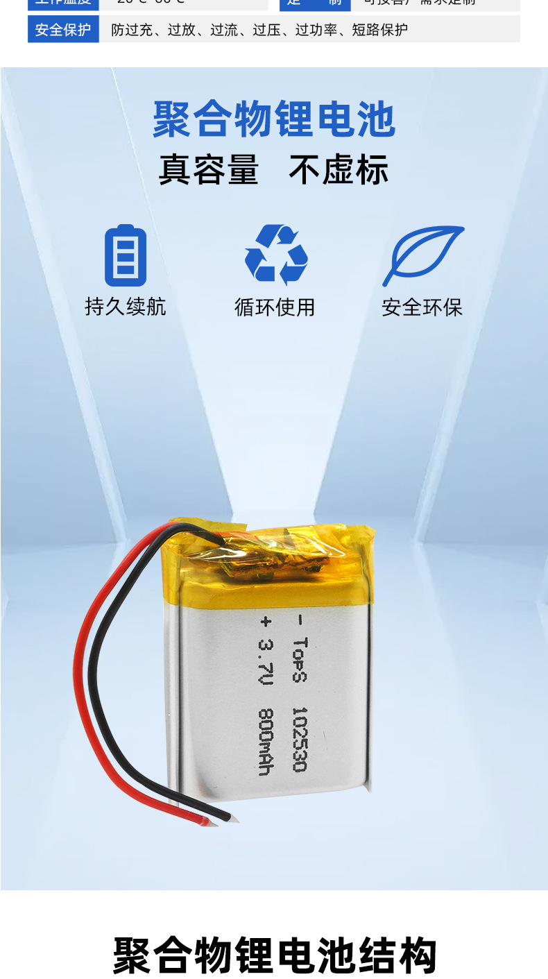 102530 폴리머 리튬 배터리 800mAh 충분한 용량 인증 미용 기기 마우스 스마트 홈 소프트 팩 배터리