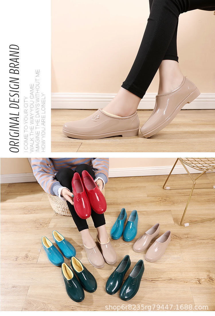 개인적으로 인기 있는 사계절 로우탑 여성화, 새로운 스타일의 얕은 입구 로우탑 여성용 워터슈즈, 따뜻하고 부드러운 장화, 여성용 고무장화스토어 가기