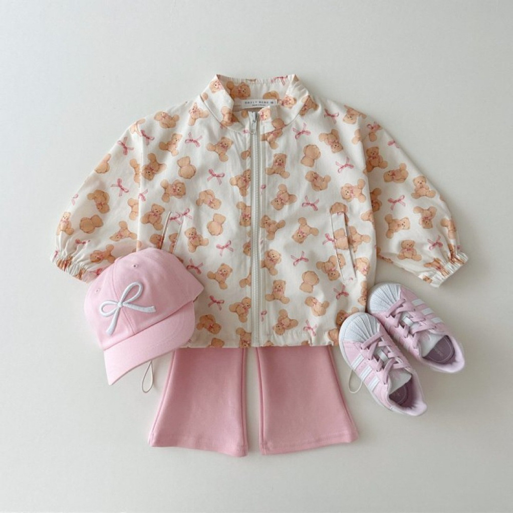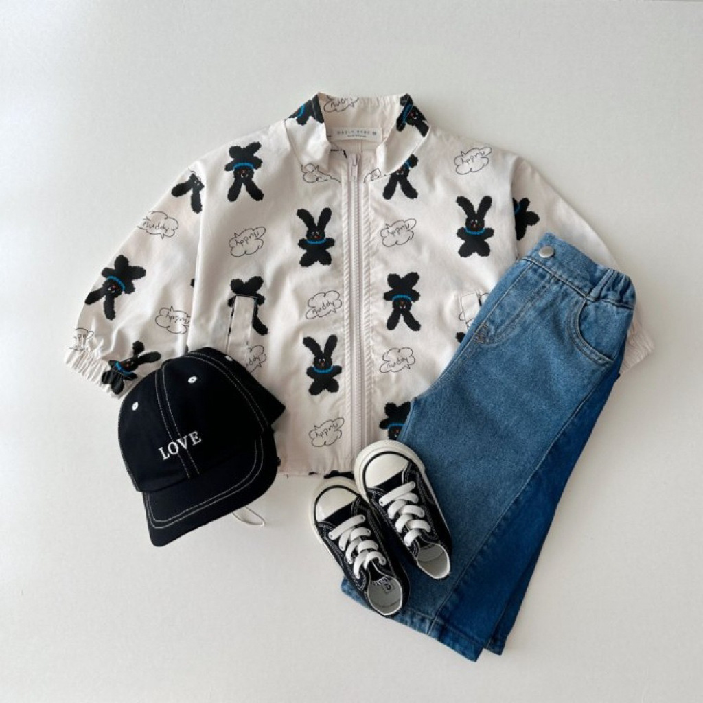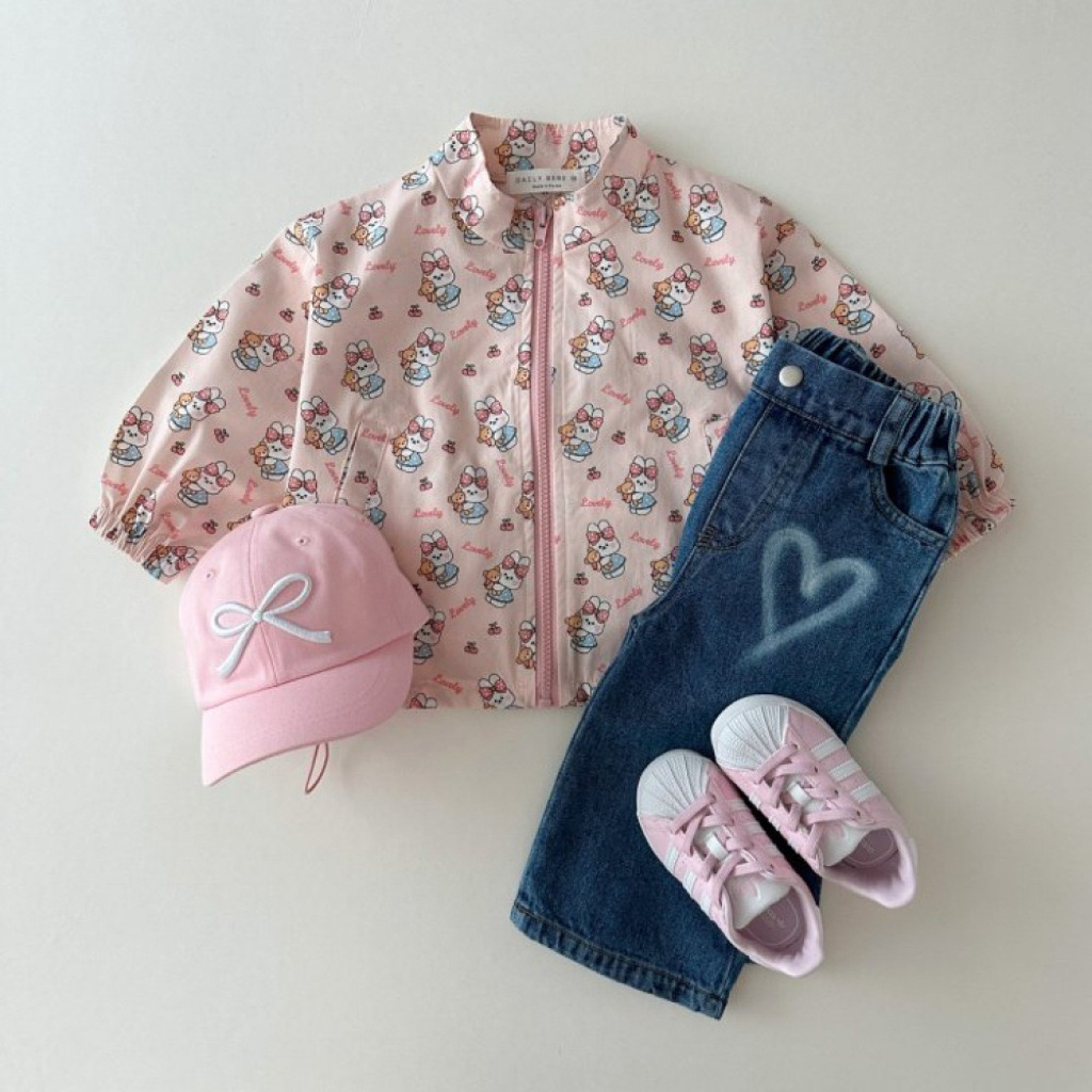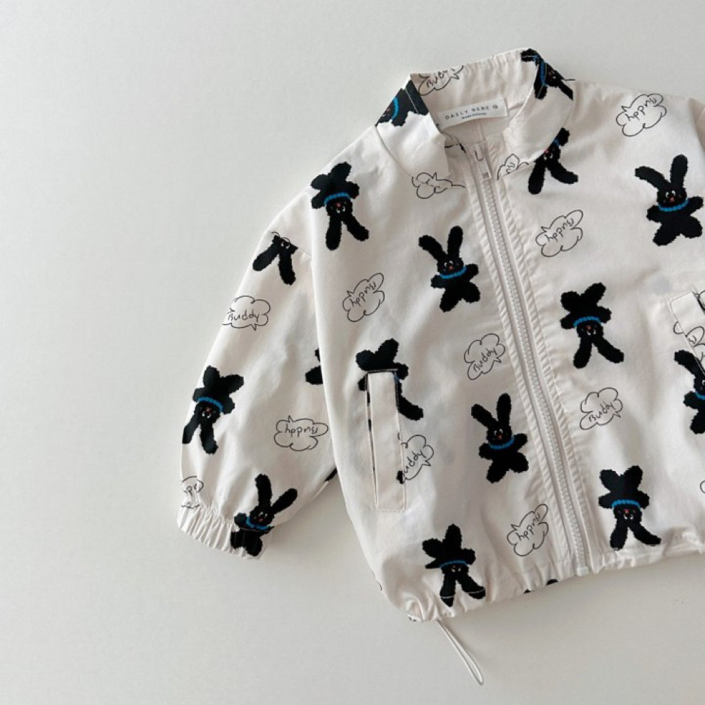 한국어 버전 ins 봄과 가을 다목적 패션 프린트 스탠드 칼라 방풍 재킷 드로스트링 재킷 귀여운 만화 지퍼 탑스토어 가기