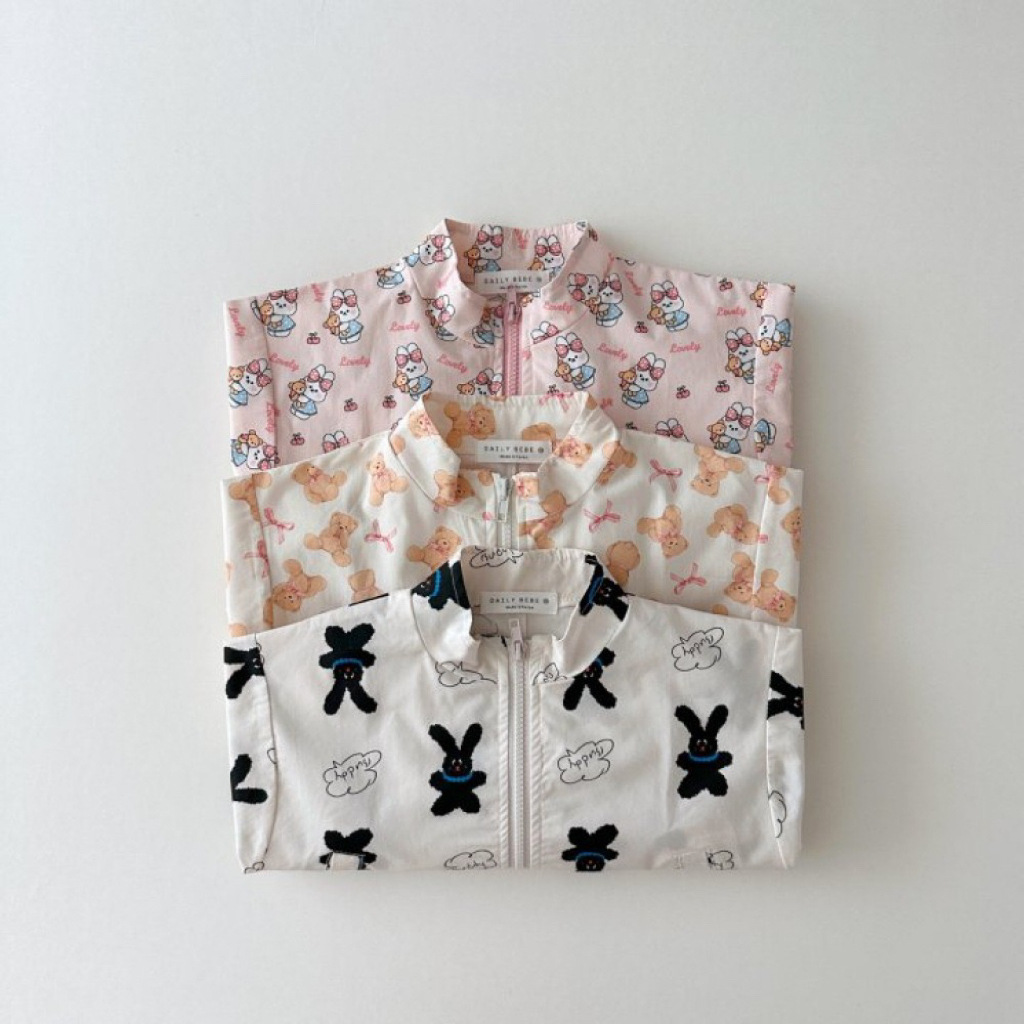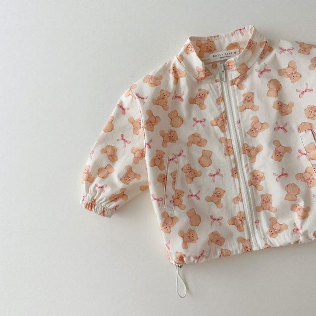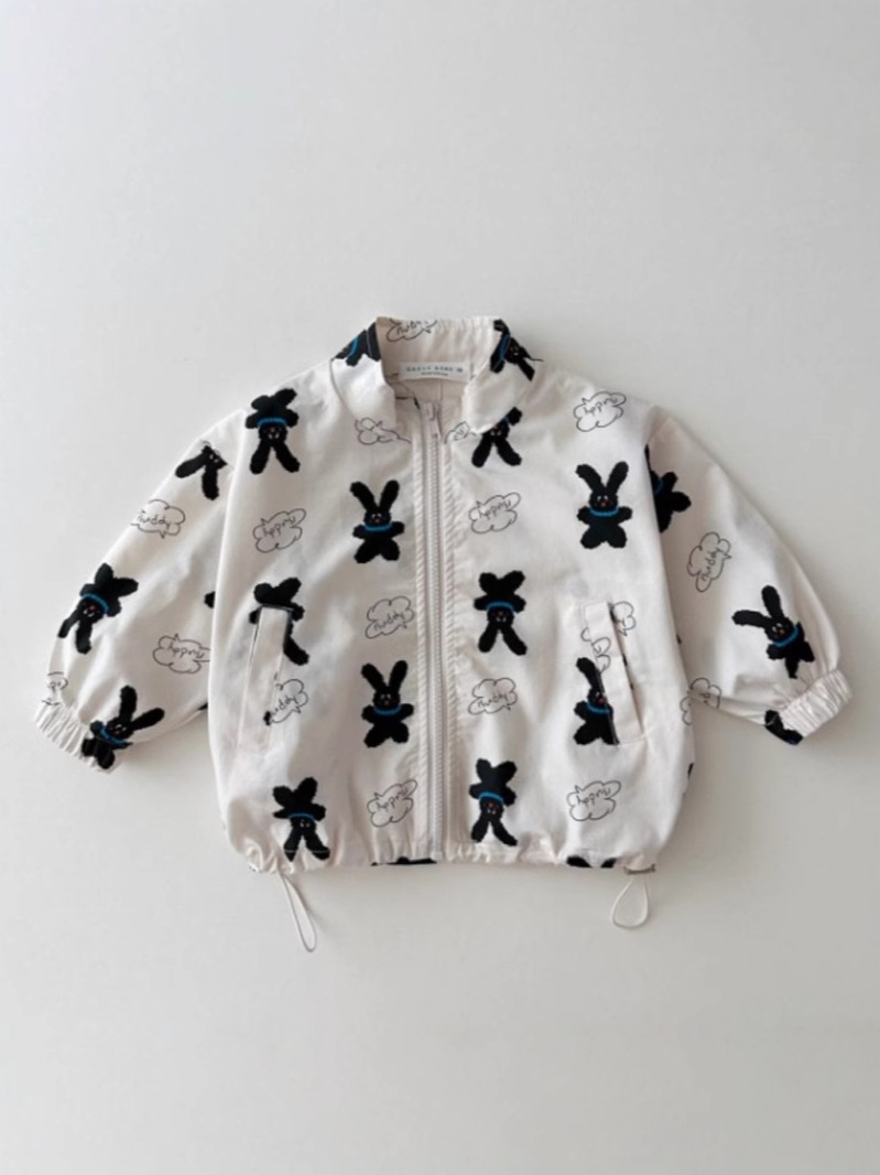 한국어 버전 ins 봄과 가을 다목적 패션 프린트 스탠드 칼라 방풍 재킷 드로스트링 재킷 귀여운 만화 지퍼 탑