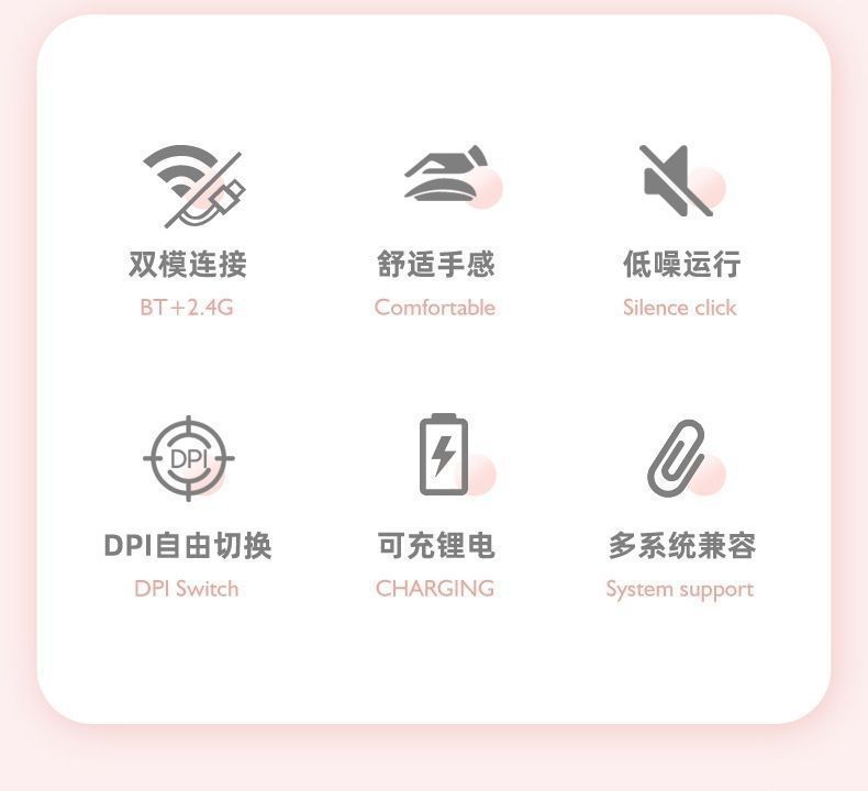 • 핑크 무선 마우스 듀얼 모드(충전식 버전))