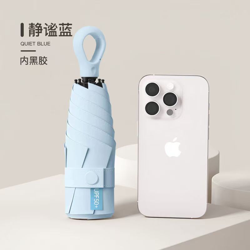 미니 휴대용 50% off 우산 링 버클 핸들 비 또는 빛 캡슐 우산 여성용 검정색 비닐 자외선 차단제 자외선 차단제 태양 우산