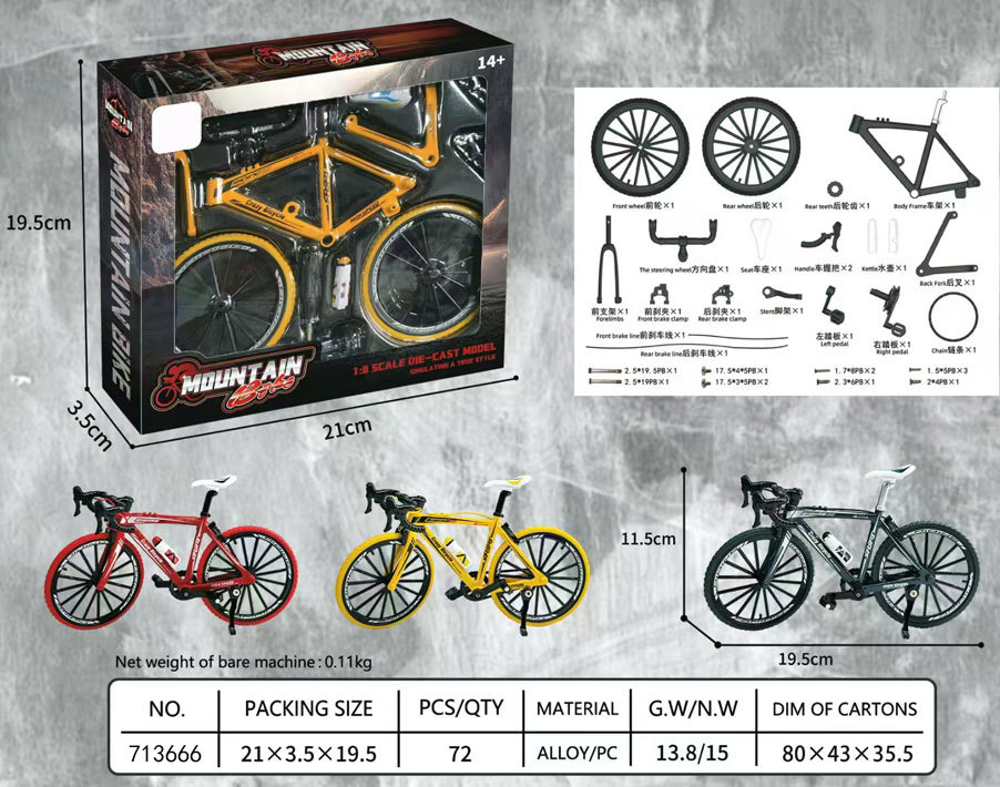 • 칼라 박스 [회색 완성품 버전] 합금 벤트 핸들 산악 자전거 모형