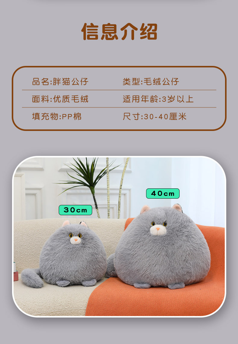귀여운 뚱뚱한 고양이 인형 플러시 장난감 어린이와 소녀를위한 어리석은 고양이 인형 고양이를 달래는 선물스토어 가기
