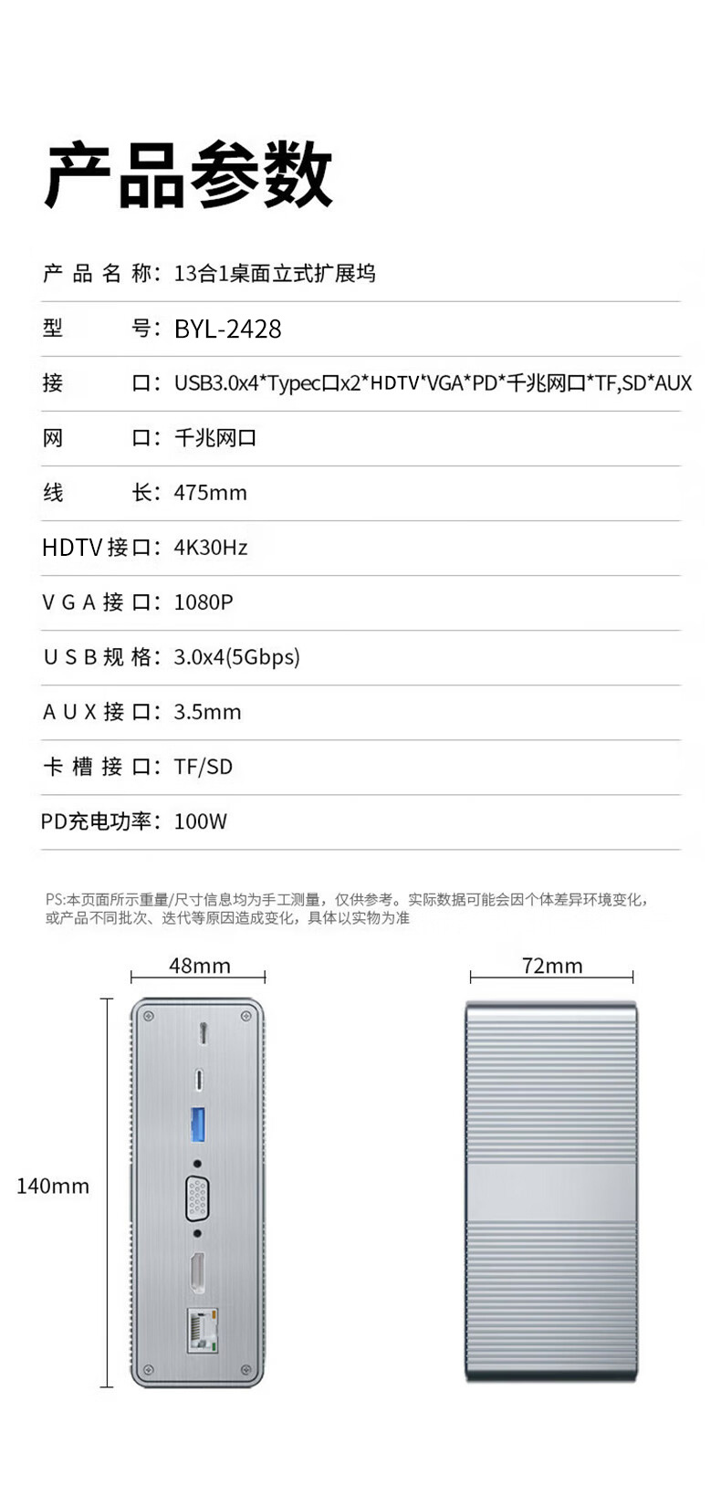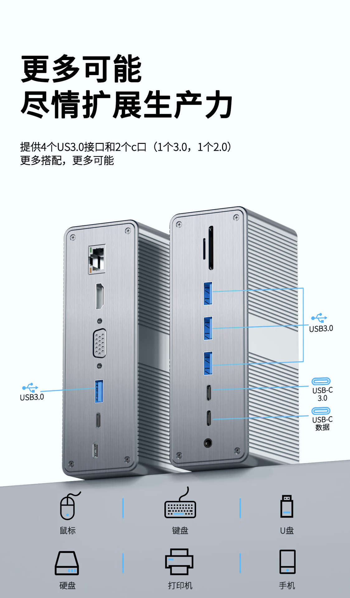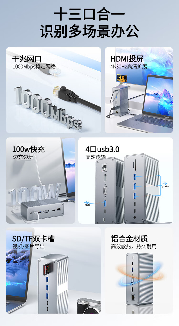 국경 간 수직 확장기 유형-c 허브3.0 허브 13-in-one 데스크탑 멀티 인터페이스 확장 도크