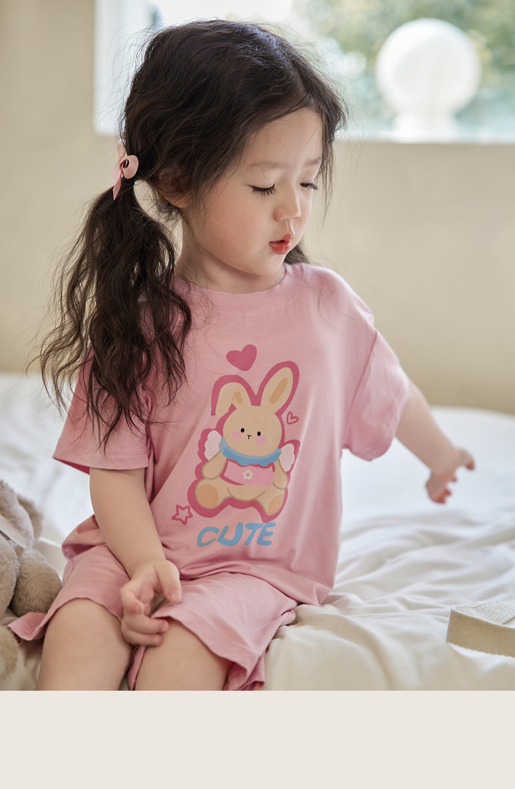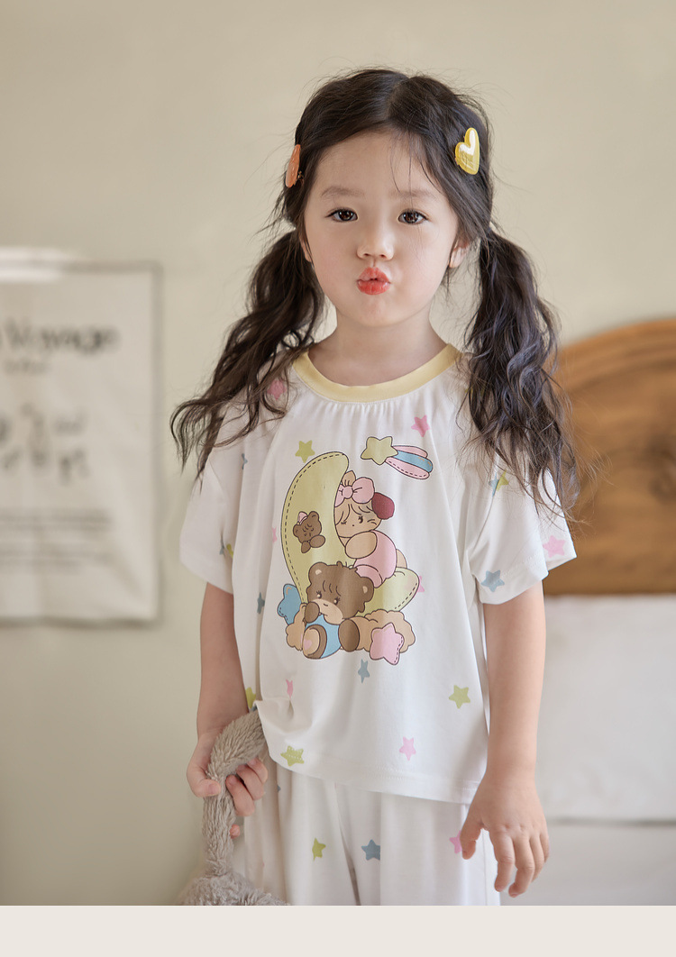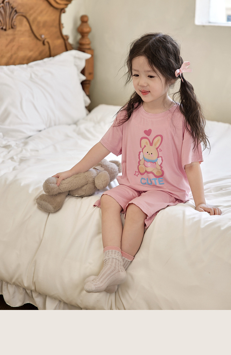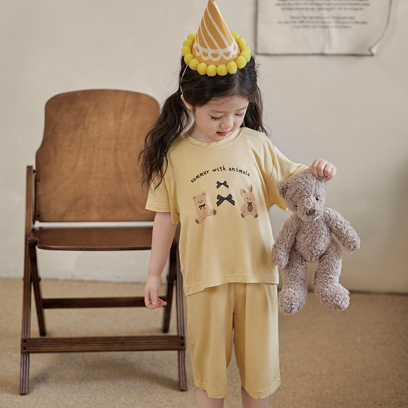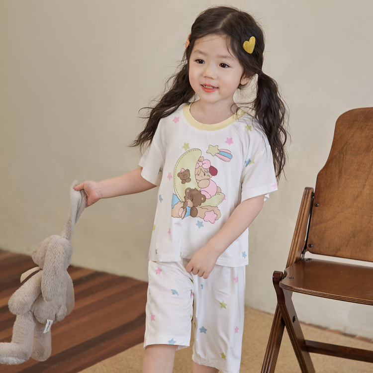 시원한 여름 아기 경량 잠옷 아기 모달 만화 가정 의류 세트 반팔 소녀스토어 가기