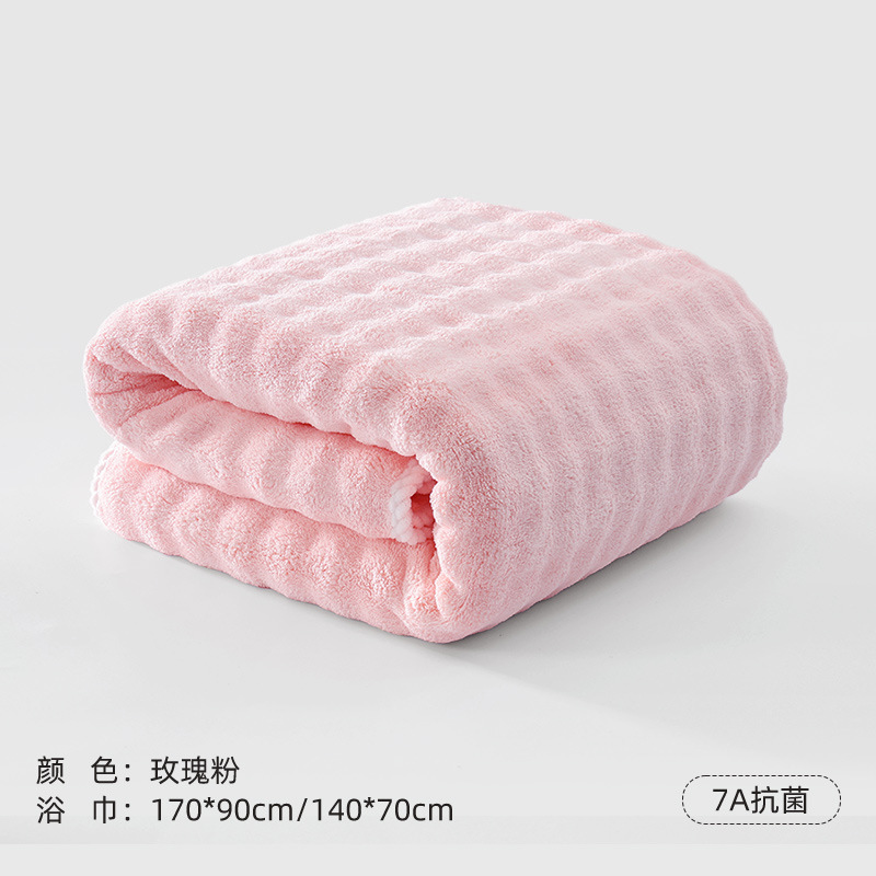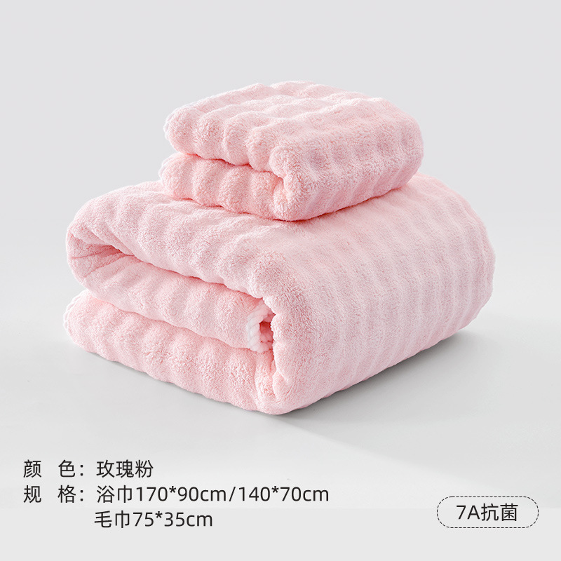 • (로즈핑크) 목욕타올+타올 [크림버블벨벳 7A등급 항균]
