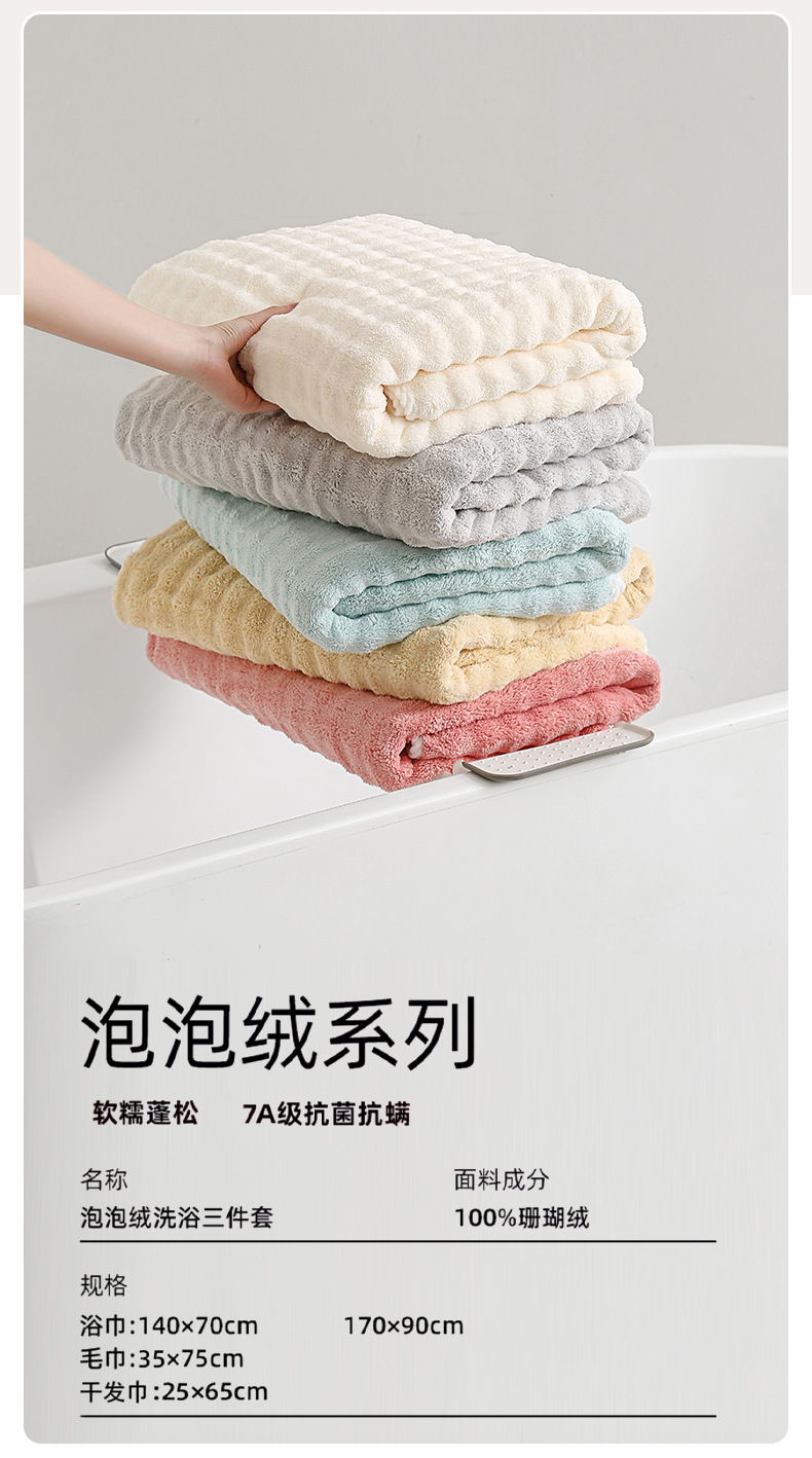 • (소프트 미스트 파우더) 목욕타월 + 타월 + 헤어드라이 타월 [크림 버블 벨벳 7A등급 항균]
