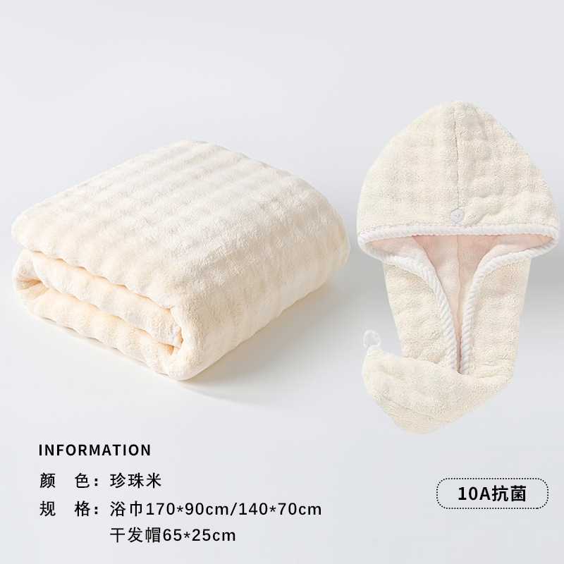 • (진주쌀) 목욕타월 + 헤어드라이타월 [크림버블벨벳 7A등급 항균]