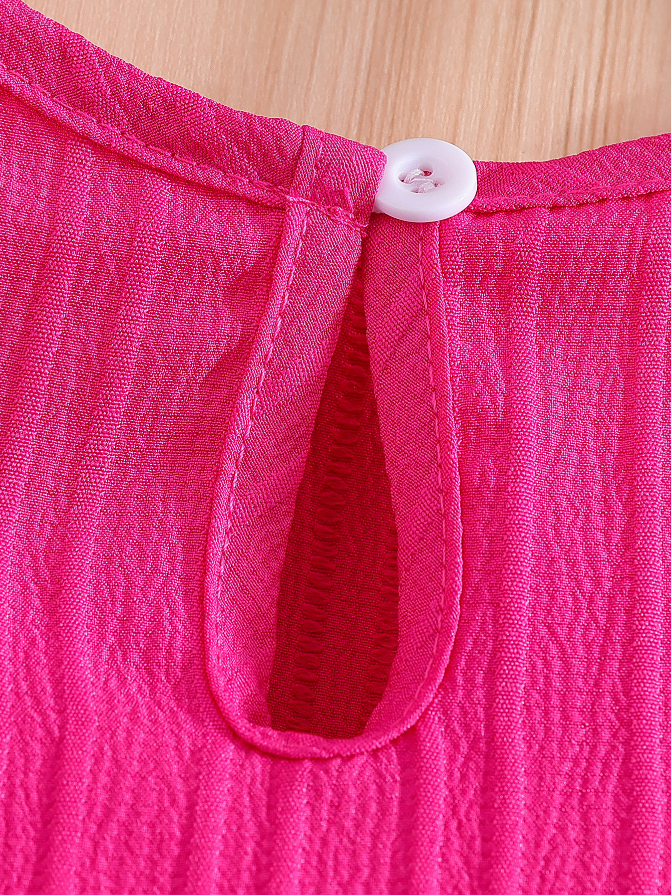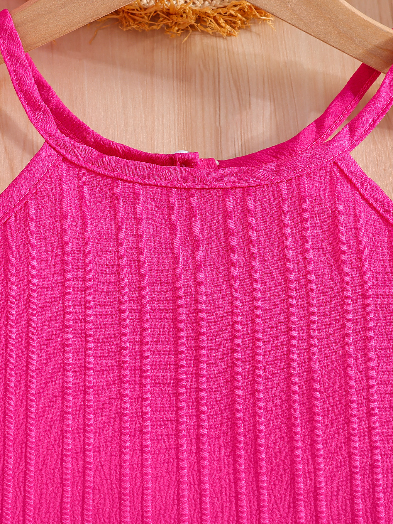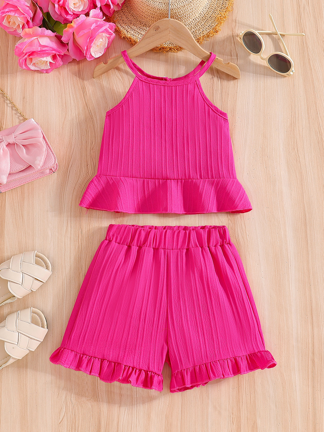 국경 간 소녀 민소매 조끼 투피스 로즈 레드 반바지 귀여운 프릴 어린이 여름 캐주얼 슈트