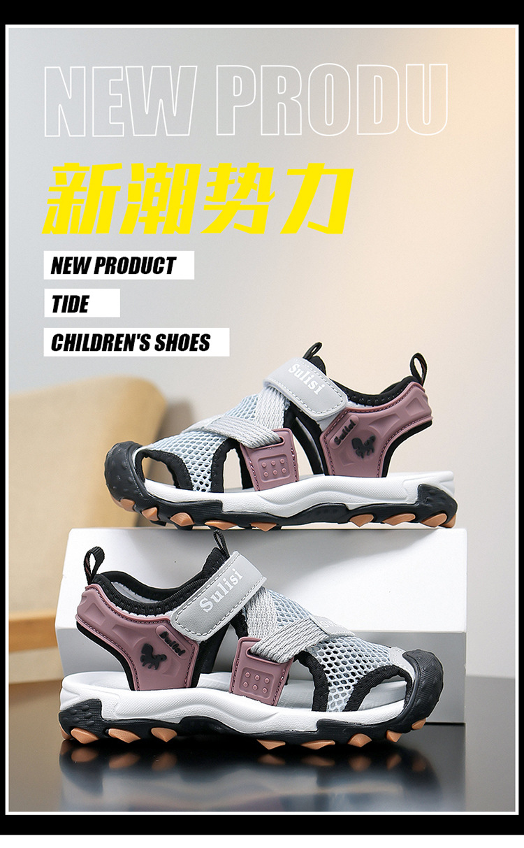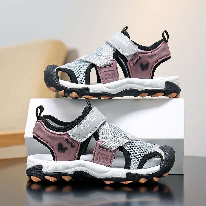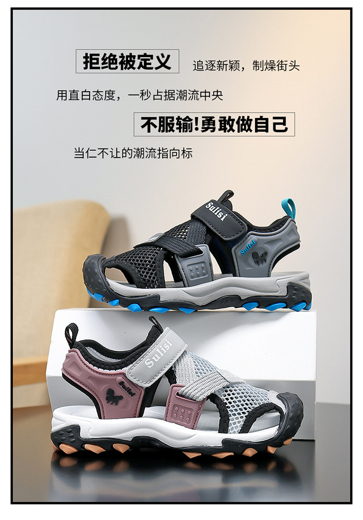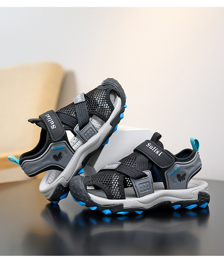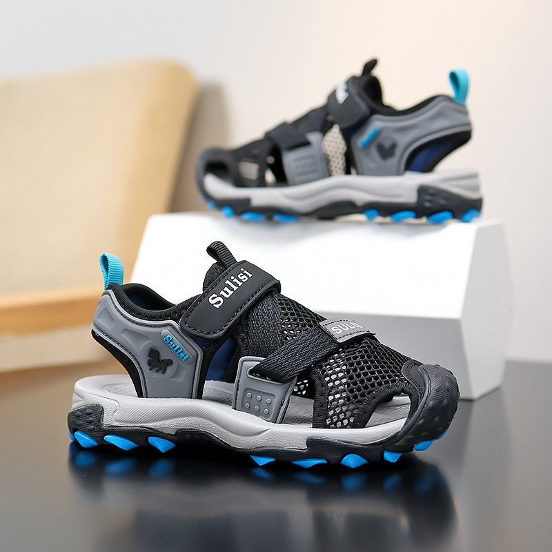 소년 2025 새로운 여름 미끄럼 방지 야외 바오터우 비치 샌들 및 슬리퍼, 중대형 소년을 위한 통기성 강 신발