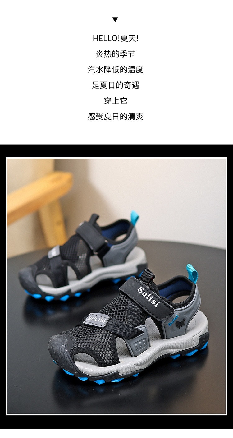 소년 2025 새로운 여름 미끄럼 방지 야외 바오터우 비치 샌들 및 슬리퍼, 중대형 소년을 위한 통기성 강 신발스토어 가기