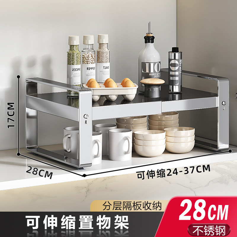 개폐식 주방 수납 선반, 조리대 캐비닛 칸막이, 캐비닛의 계층형 선반, 조미료 수납 냄비 선반, 데스크탑 소형 선반스토어 가기