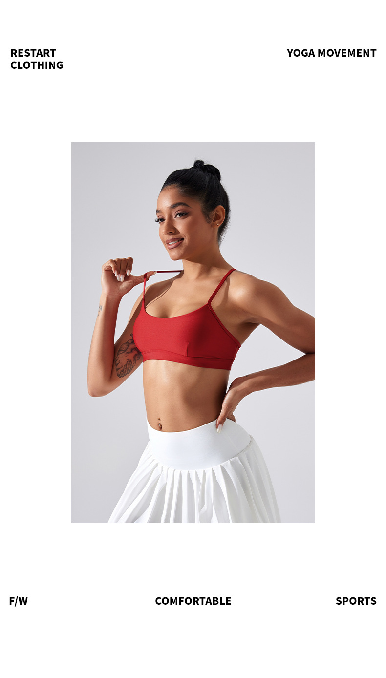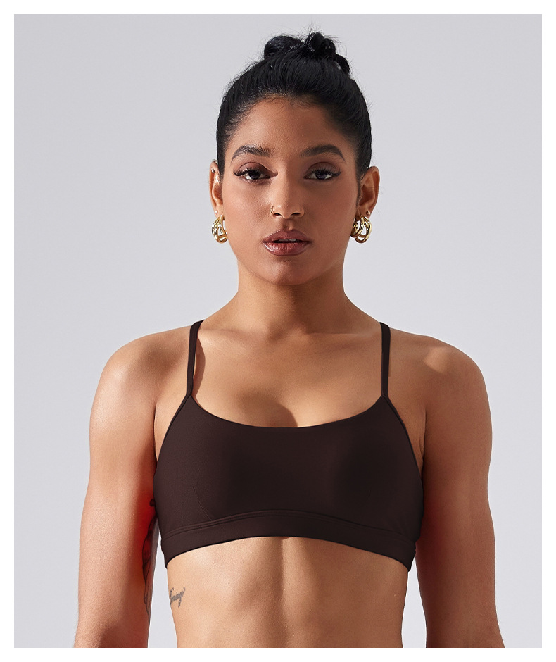 가슴 패드가 있는 스포츠 브라, 요가 상의, 조절 가능한 누드 항균 조끼, 얇은 스트랩, 피트니스 필라테스 및 아름다운 등