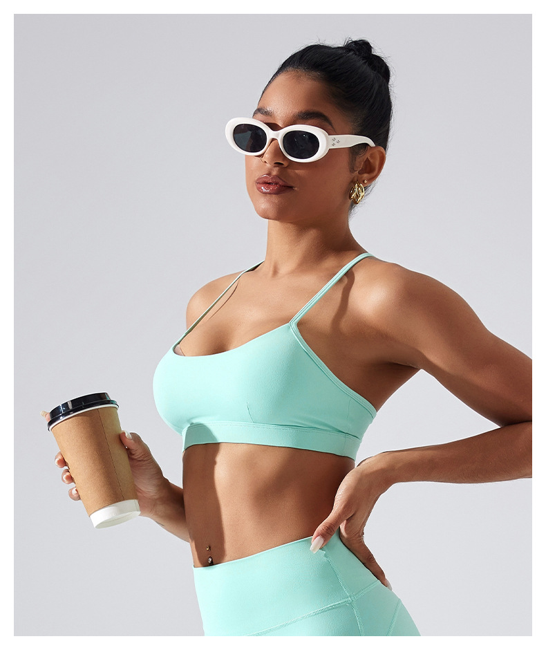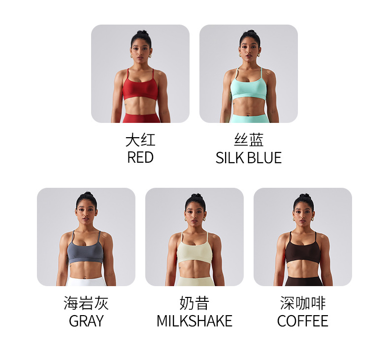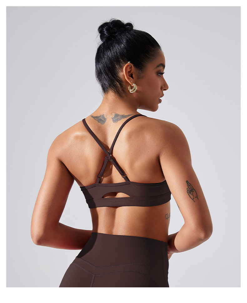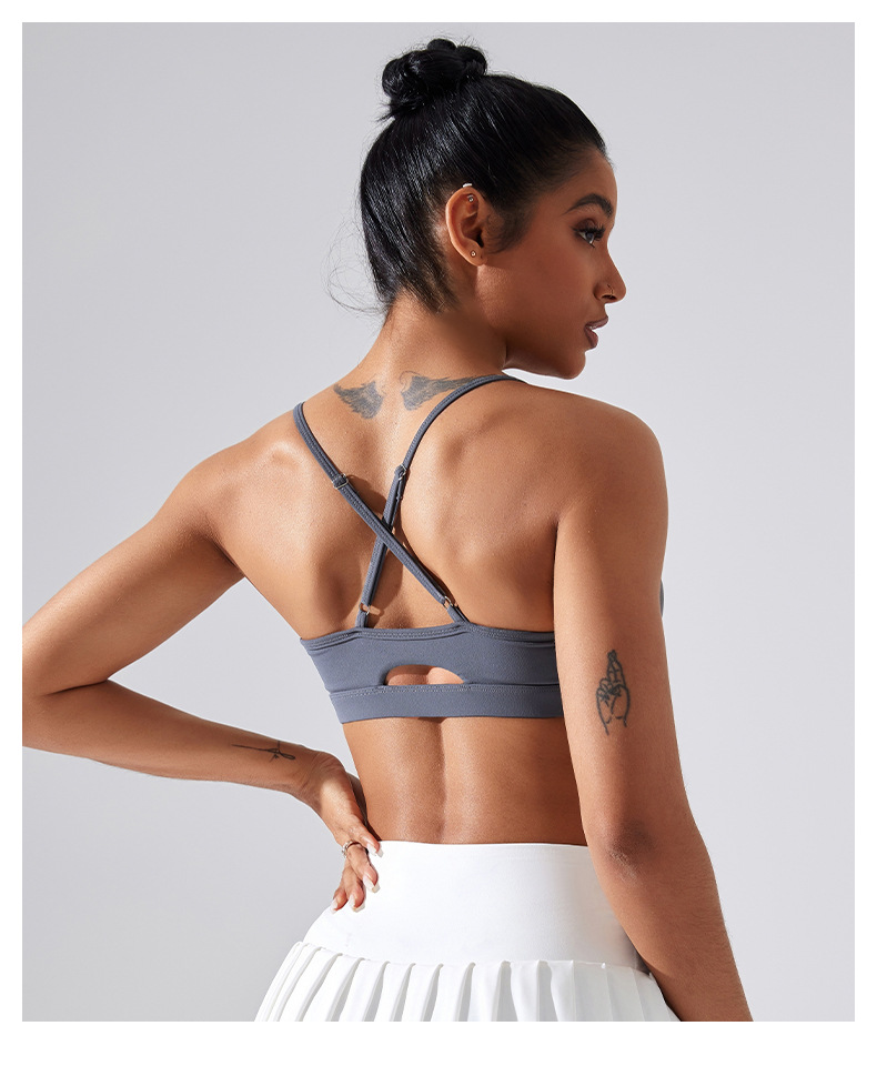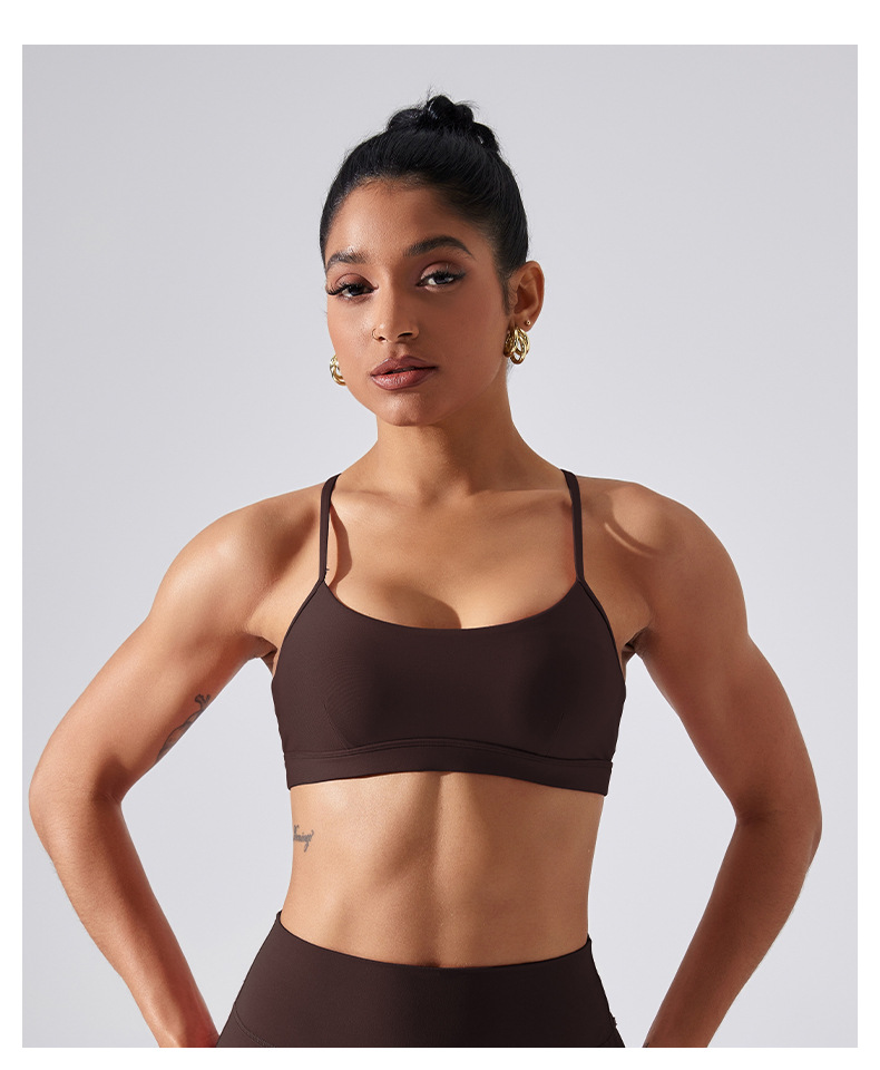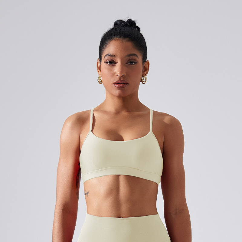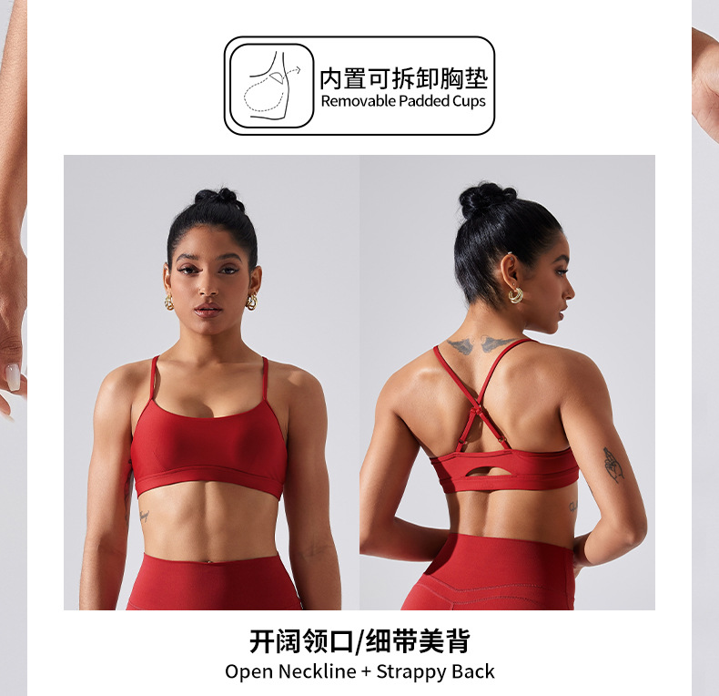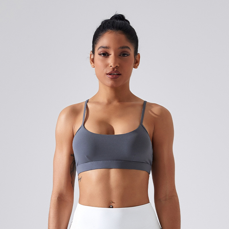 가슴 패드가 있는 스포츠 브라, 요가 상의, 조절 가능한 누드 항균 조끼, 얇은 스트랩, 피트니스 필라테스 및 아름다운 등스토어 가기